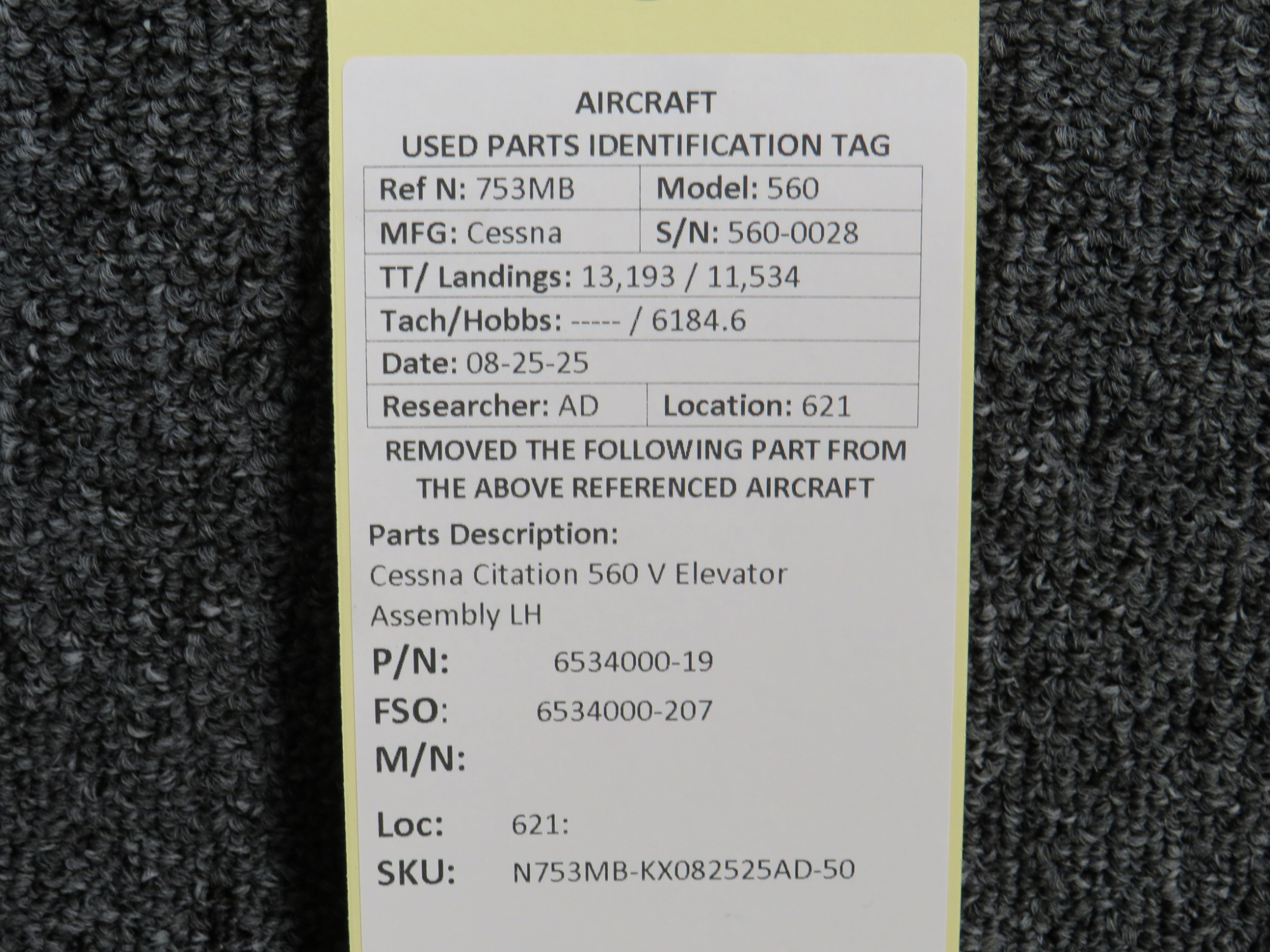 Unless specifically noted, most of our used airplane parts are sold in the condition they were removed, which means you should expect the usual signs of wear and tear.