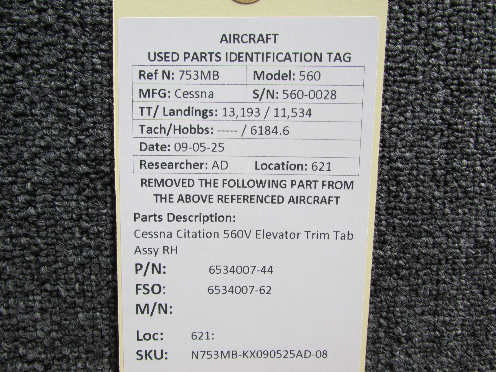 Unless specifically noted, most of our used airplane parts are sold in the condition they were removed, which means you should expect the usual signs of wear and tear.