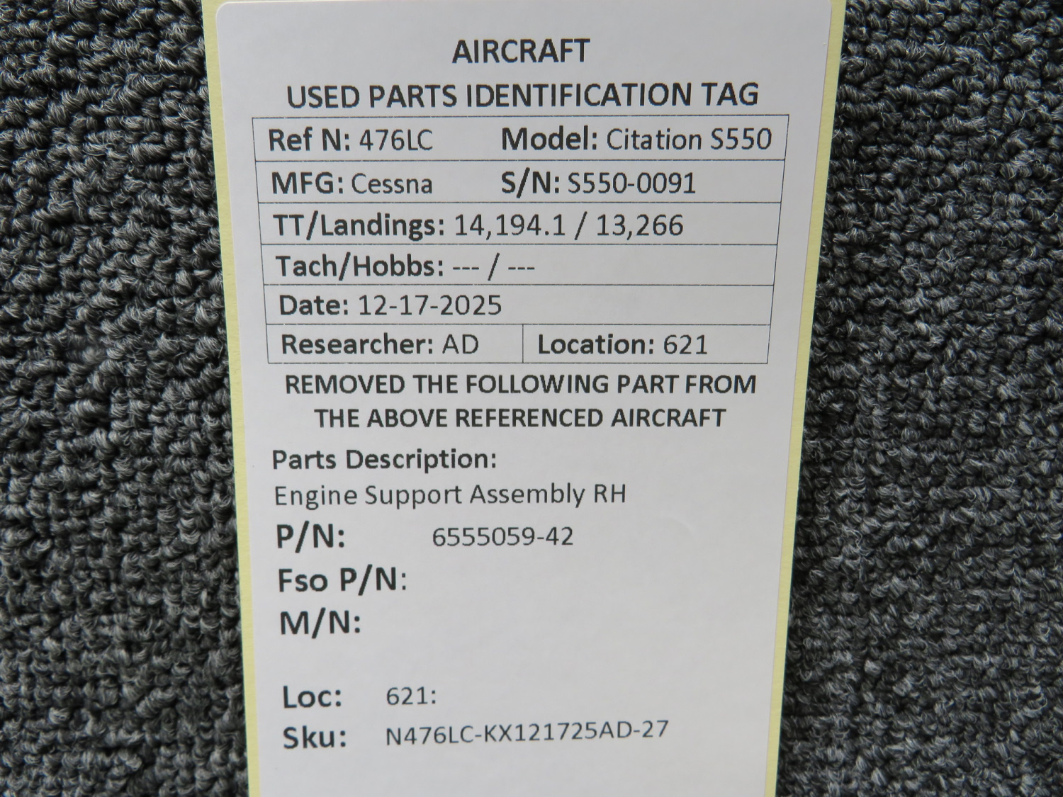 Unless specifically noted, most of our used airplane parts are sold in the condition they were removed, which means you should expect the usual signs of wear and tear.