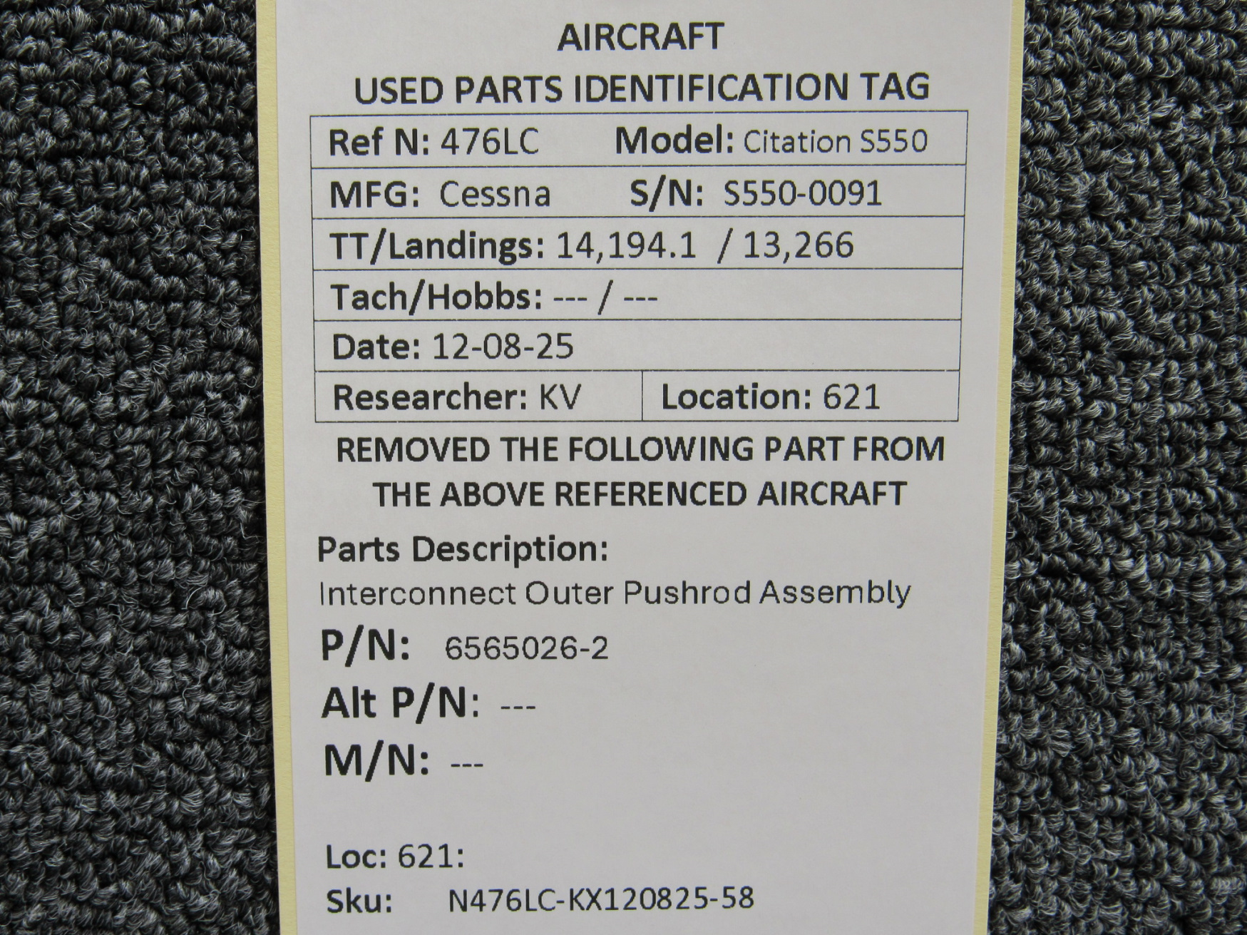 Every part is carefully inspected throughout our process and several times before it goes online. Most items are sold as-removed, just as they came off the aircraft. These parts are not functionally tested. What we do provide is clear photos, full traceability when available, pricing that reflects the as-removed condition, and a no-nonsense 90-day return window.
