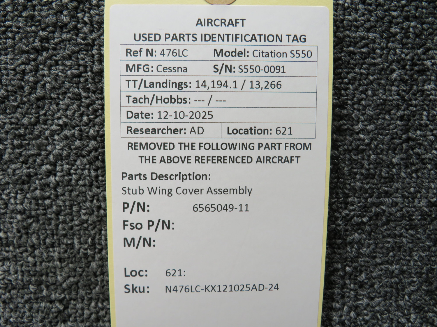 Unless specifically noted, most of our used airplane parts are sold in the condition they were removed, which means you should expect the usual signs of wear and tear.