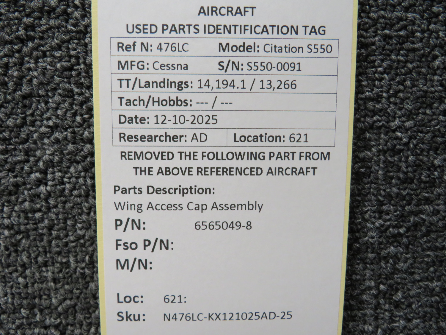 Unless specifically noted, most of our used airplane parts are sold in the condition they were removed, which means you should expect the usual signs of wear and tear.