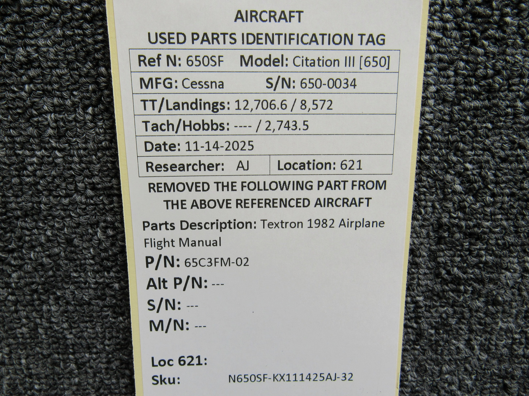 Unless specifically noted, most of our used airplane parts are sold in the condition they were removed, which means you should expect the usual signs of wear and tear.