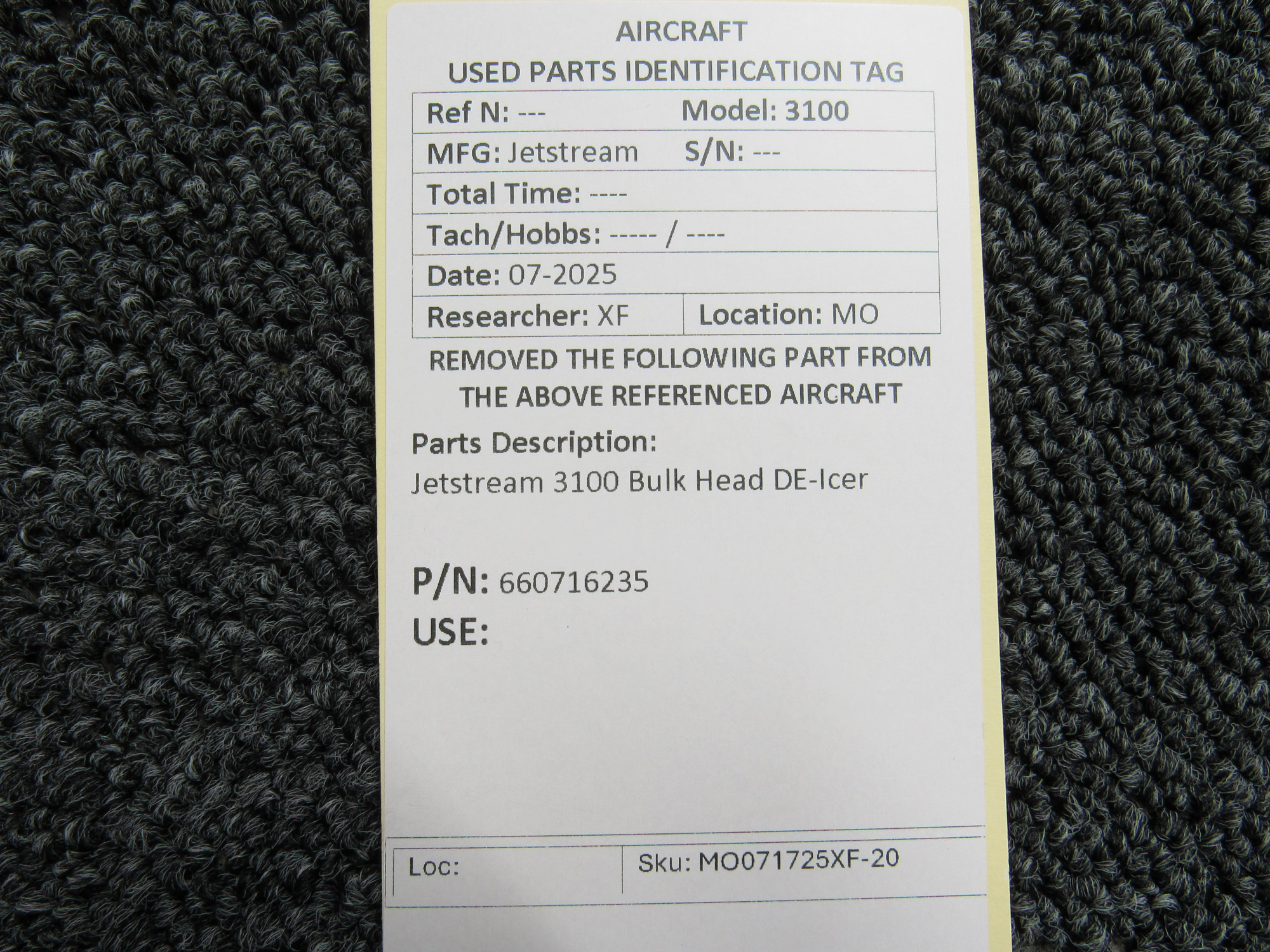 660716235 Jetstream 3100 Bulk Head DE-Icer