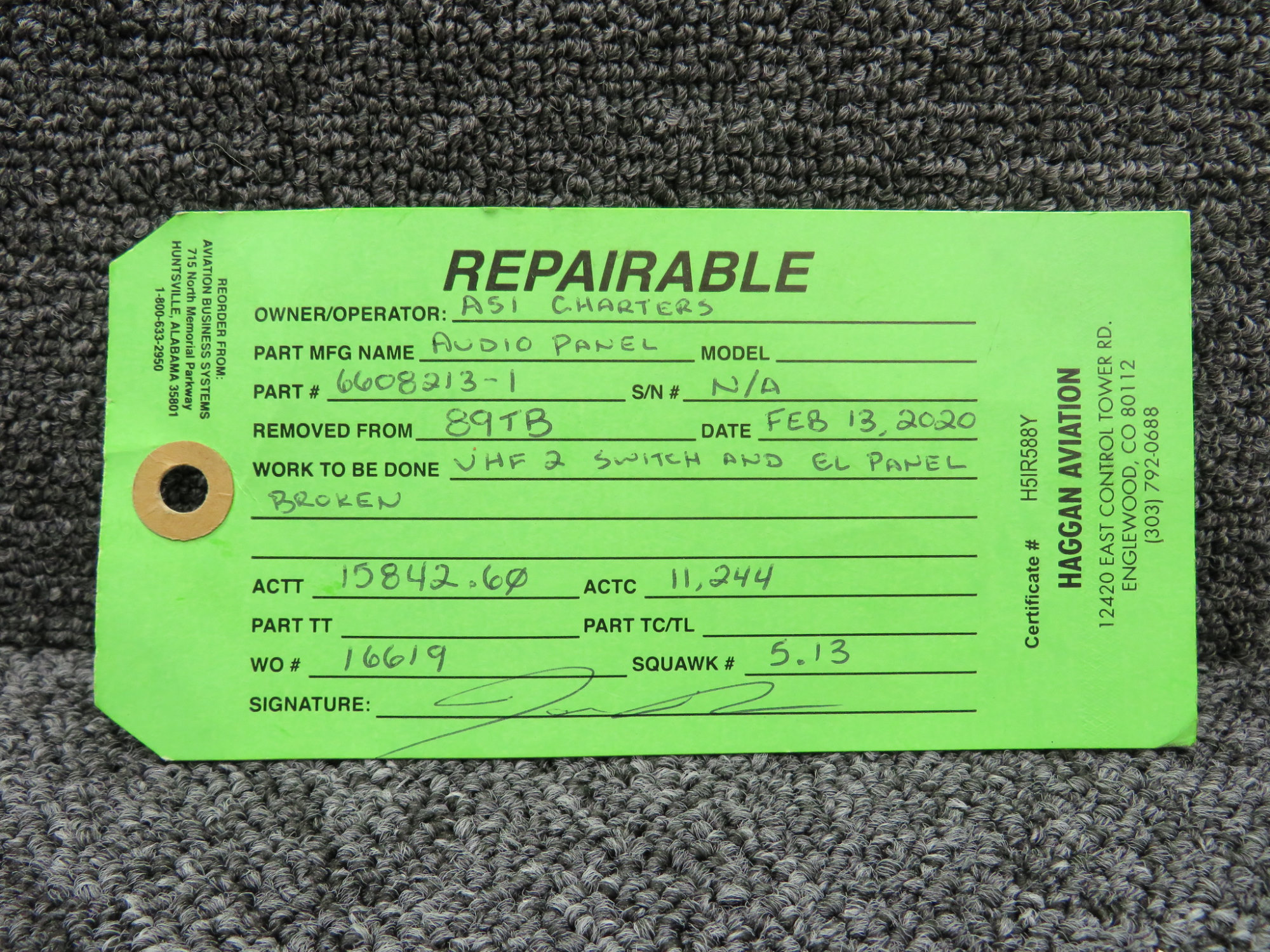 - With green repairable tag