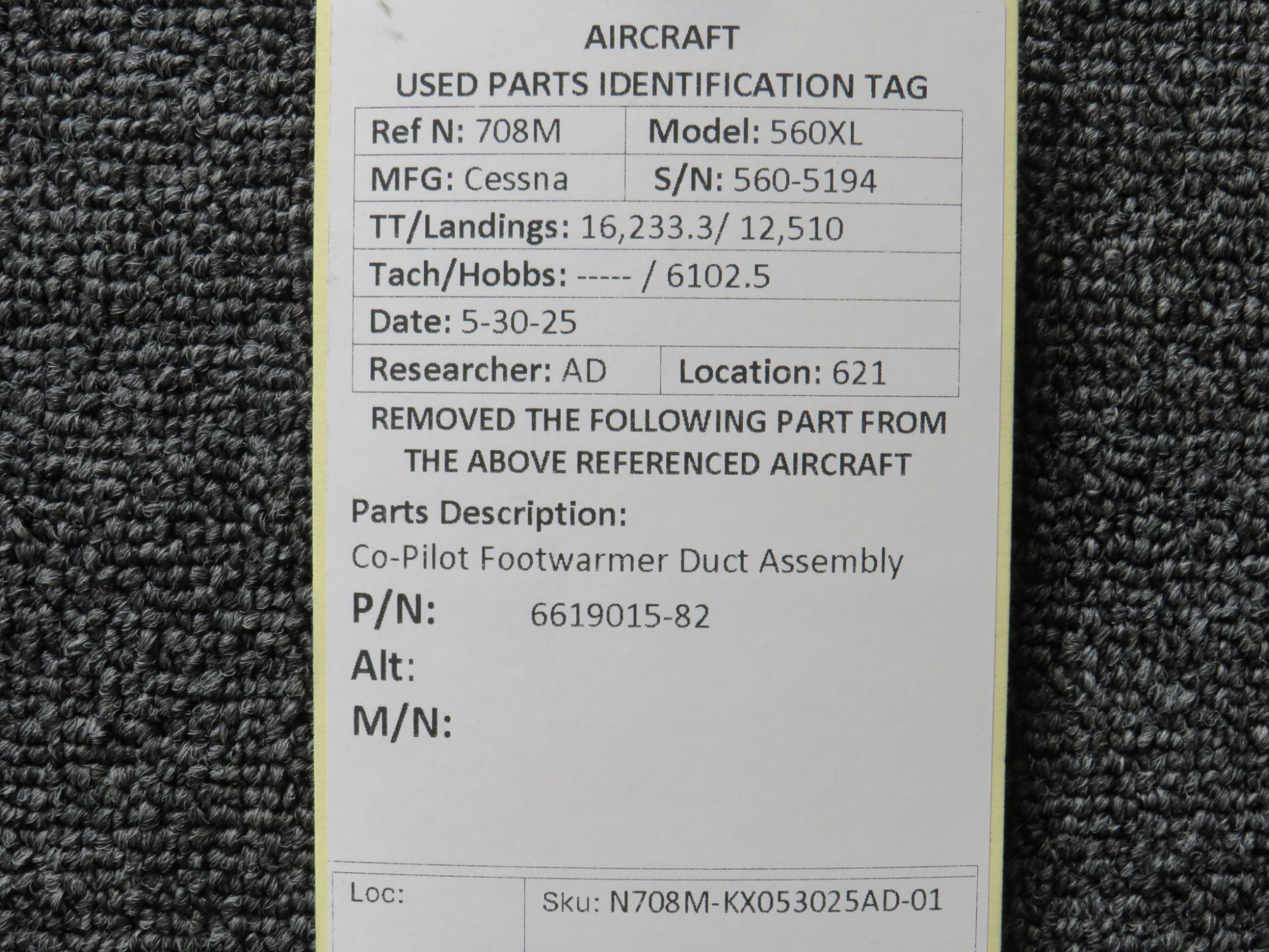 Unless specifically noted, most of our used airplane parts are sold in the condition they were removed, which means you should expect the usual signs of wear and tear.