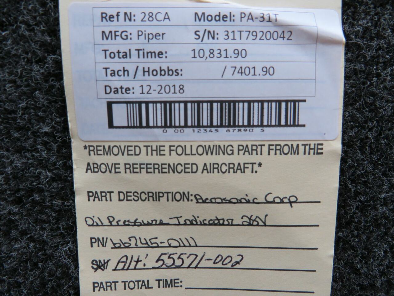 Part removed from aircraft in its original, unaltered state. Most of the inventory available from BAS Part Sales is in As-Removed condition. We removed it from the aircraft in working condition and expect it to pass inspection. As-Removed items come with our 90-day Money-Back Guarantee. Read More