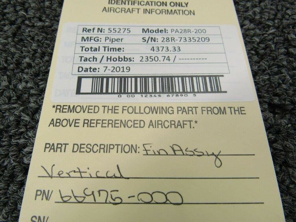 66975-000 Piper PA28R-200 Fin Assembly Vertical