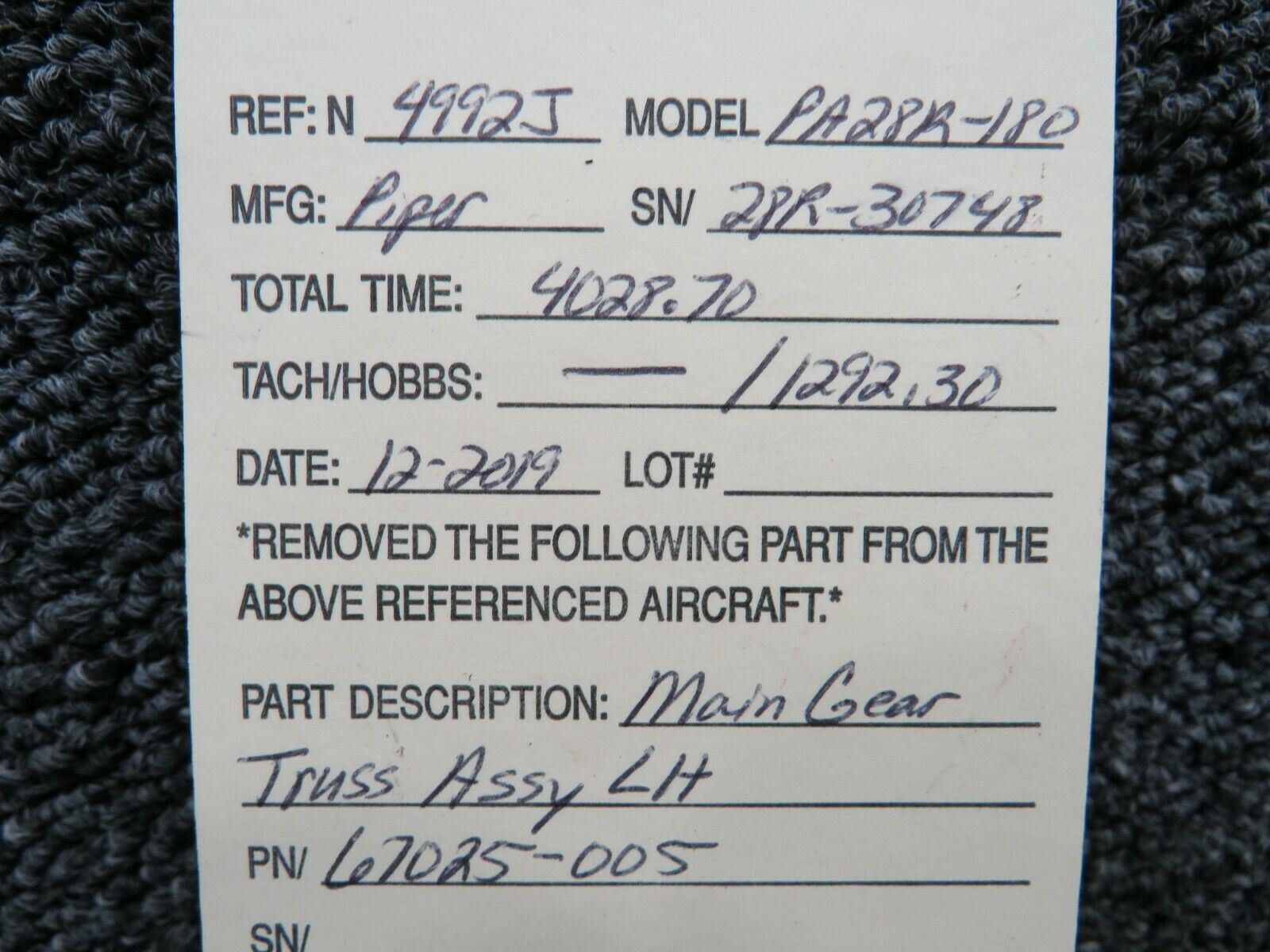 67025-005 (Use: 67025-013) Piper PA28R-180 LH Main Gear Truss Assembly