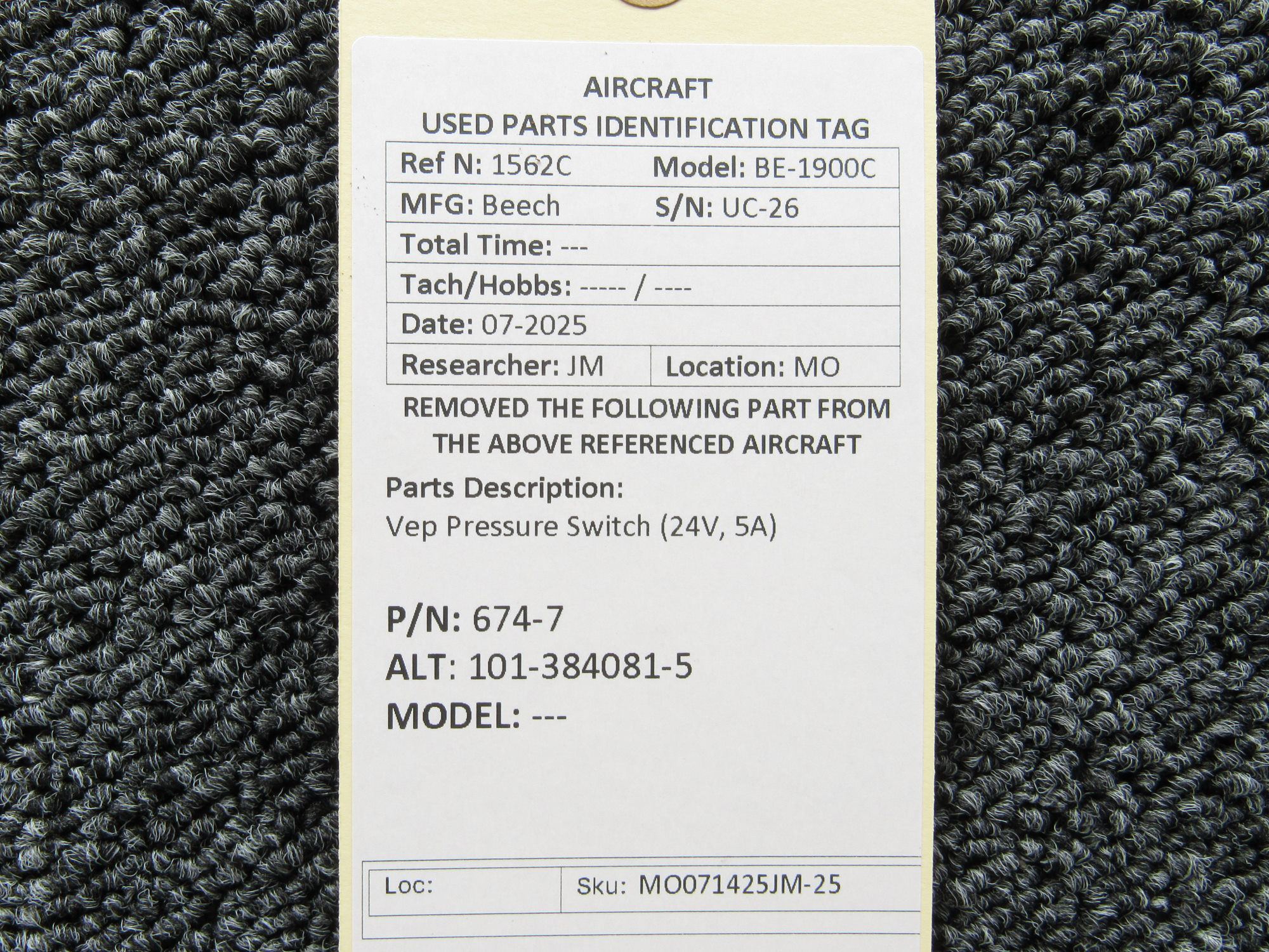 Unless specifically noted, most of our used airplane parts are sold in the condition they were removed, which means you should expect the usual signs of wear and tear.