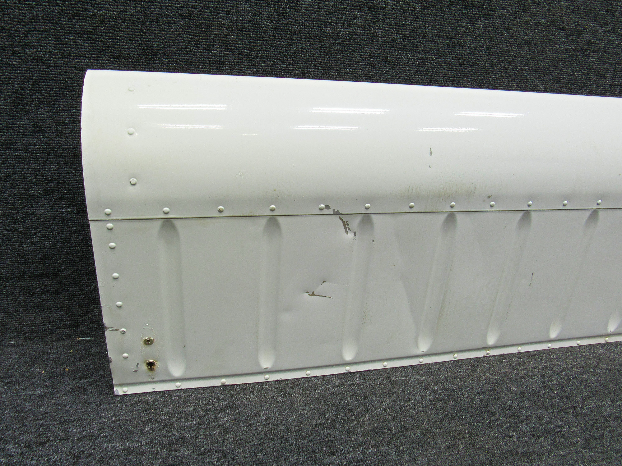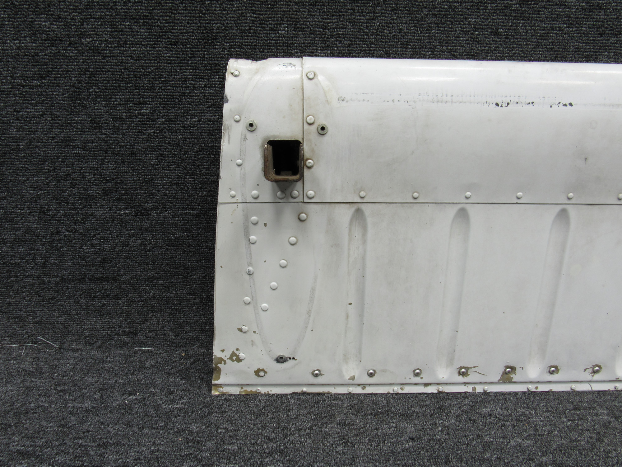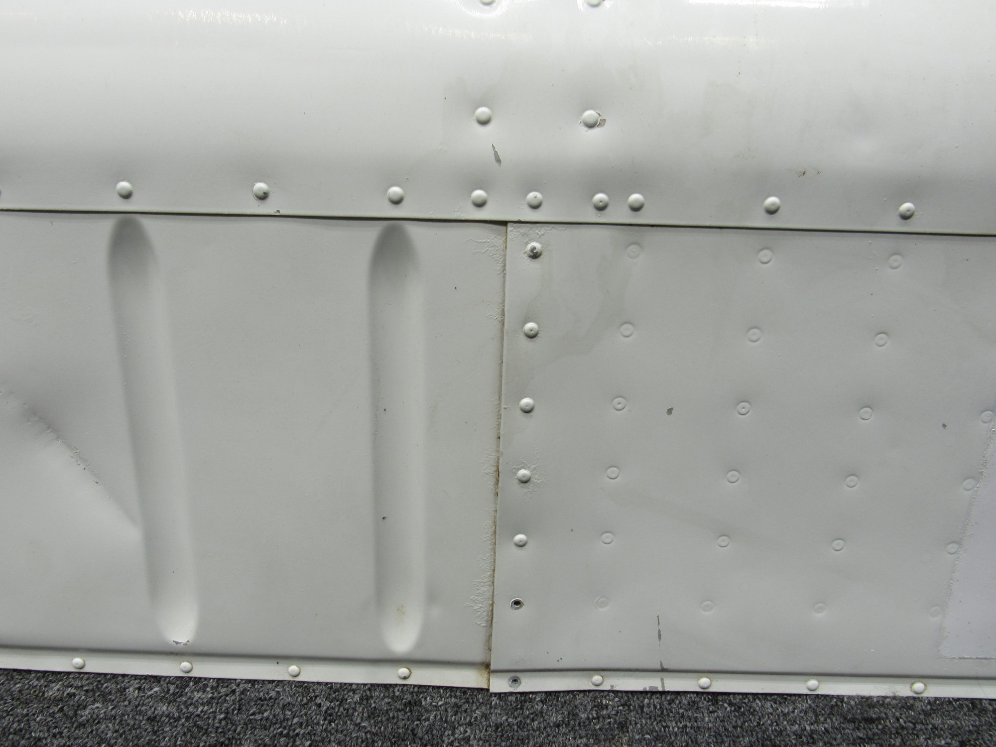 - Multiple impact dents on upper skin