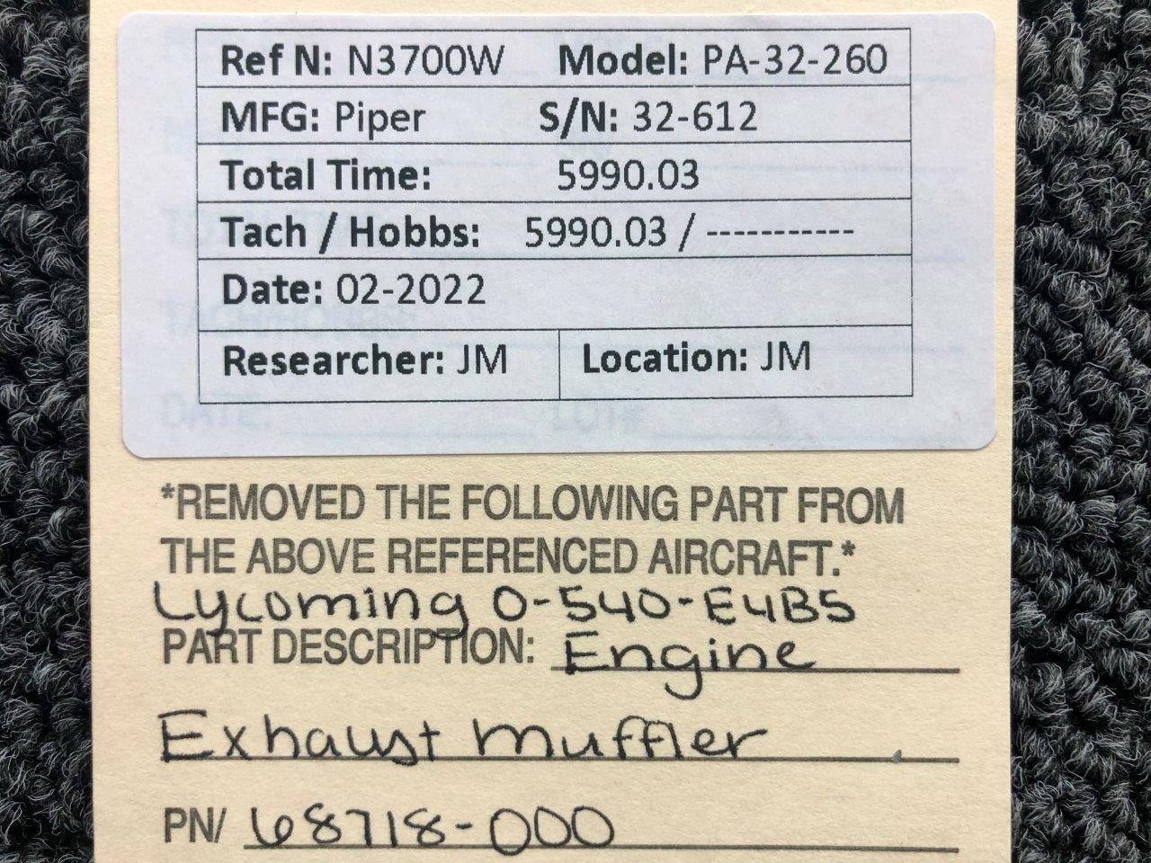 - Removed From: Lycoming O-540-E4B5