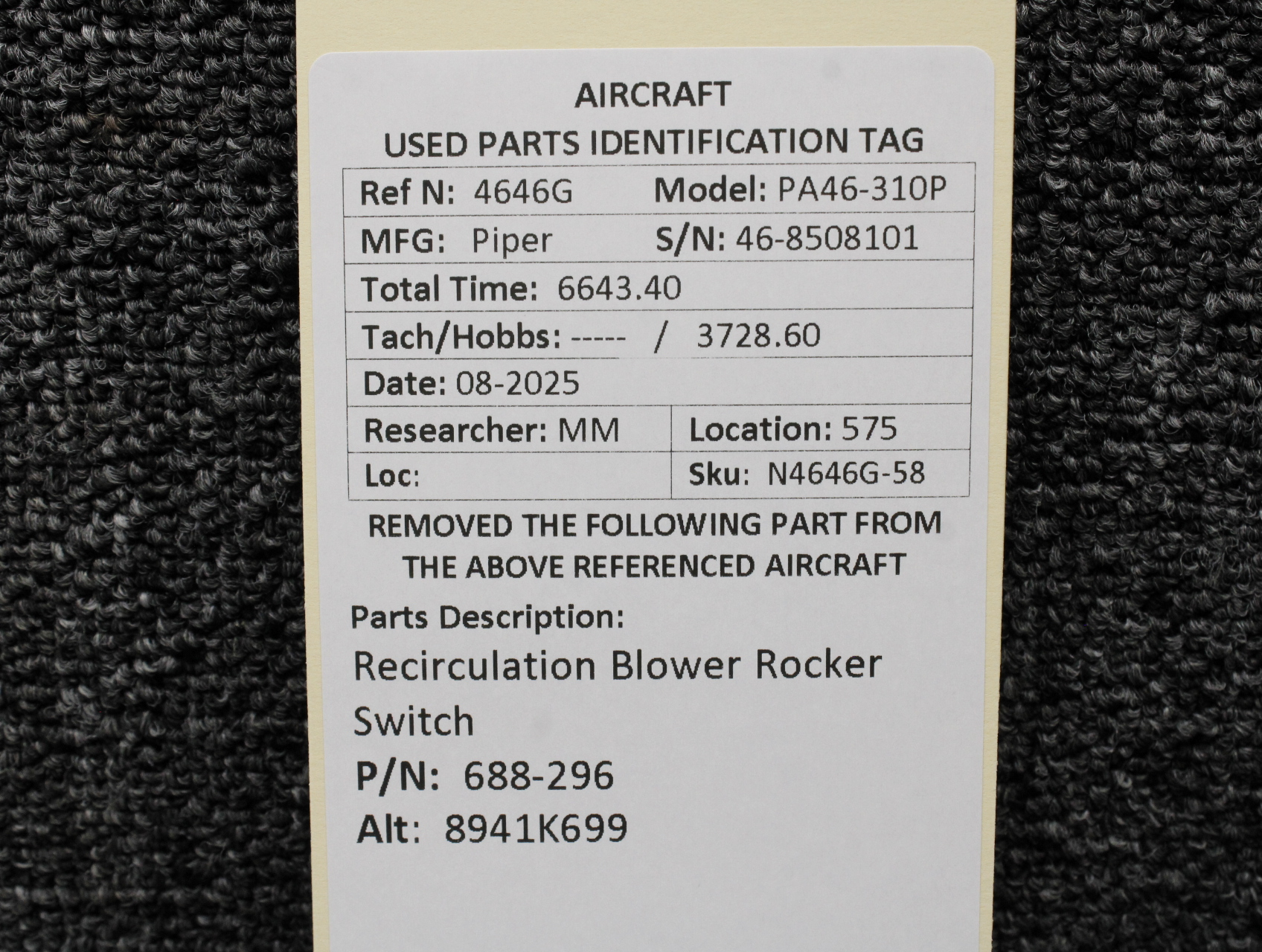 Unless specifically noted, most of our used airplane parts are sold in the condition they were removed, which means you should expect the usual signs of wear and tear.