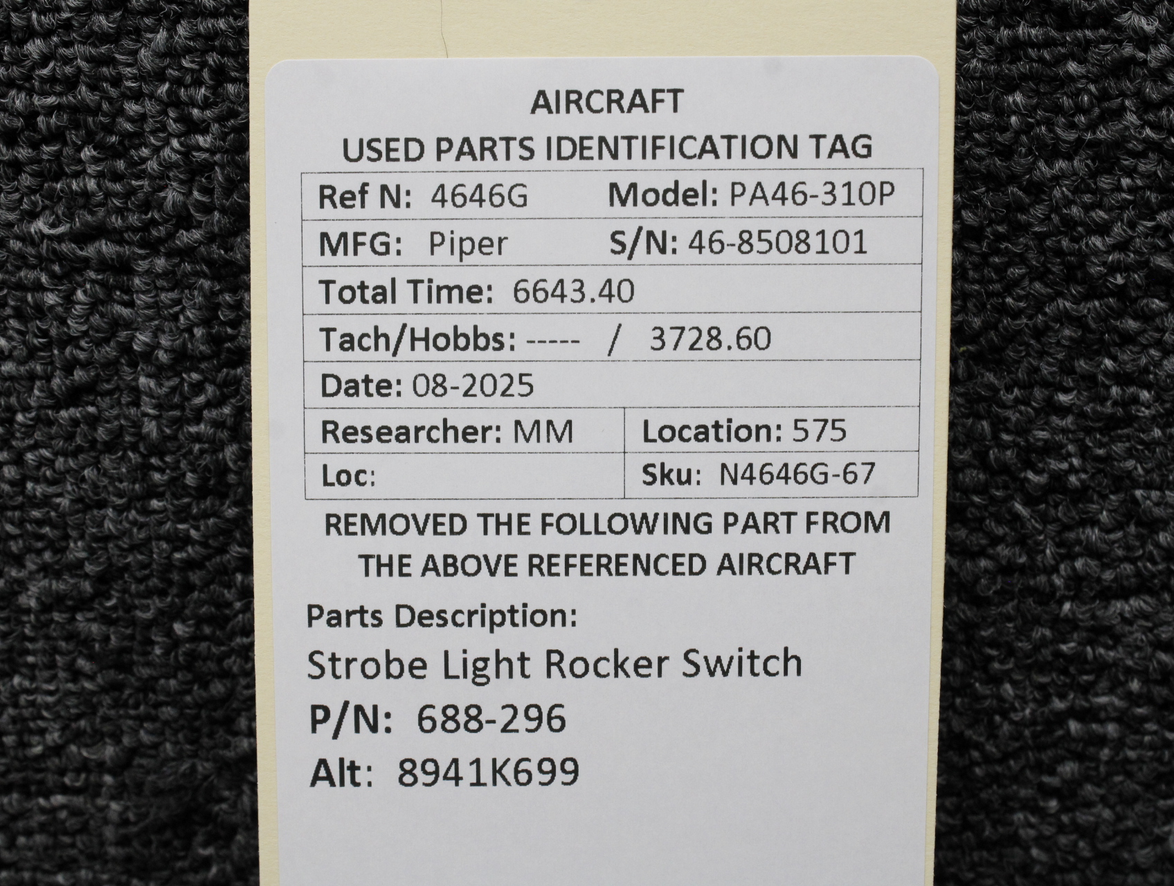 Unless specifically noted, most of our used airplane parts are sold in the condition they were removed, which means you should expect the usual signs of wear and tear.