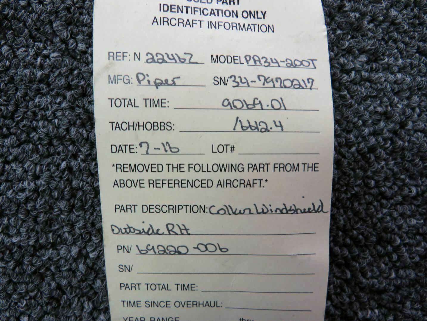 Unless specifically noted, most of our used airplane parts are sold in the condition they were removed, which means you should expect the usual signs of wear and tear.