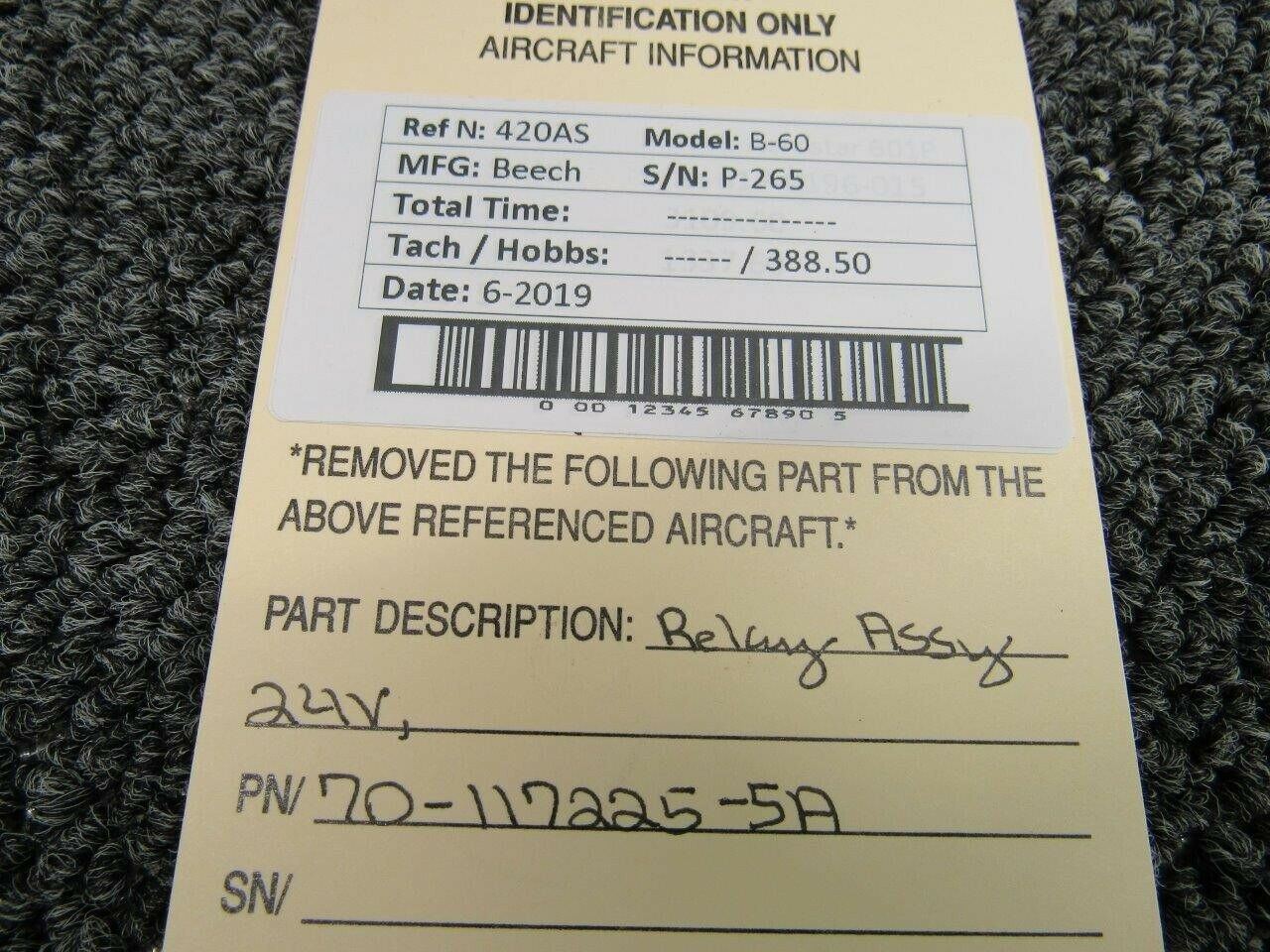 70-117225-5A Beech B-60 Relay Assy (Volts: 24)