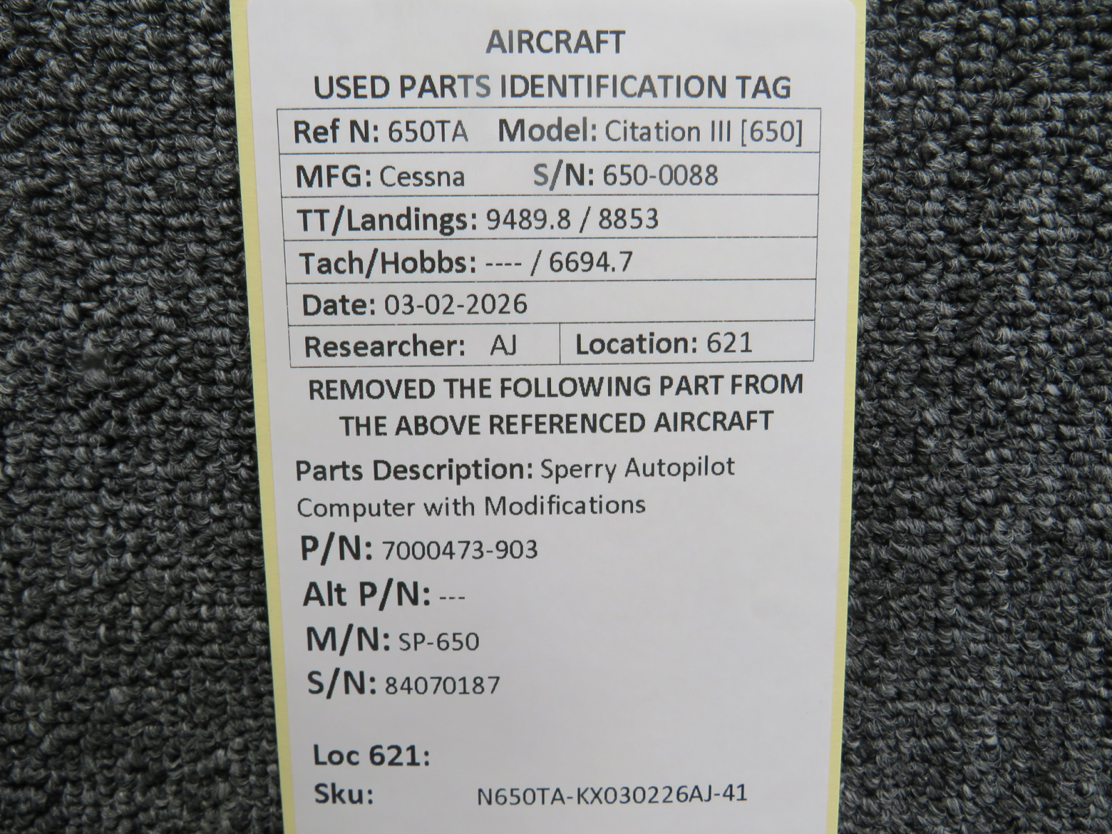 Every part is carefully inspected throughout our process and several times before it goes online. Most items are sold as-removed, just as they came off the aircraft. These parts are not functionally tested. What we do provide is clear photos, full traceability when available, pricing that reflects the as-removed condition, and a no-nonsense 90-day return window.