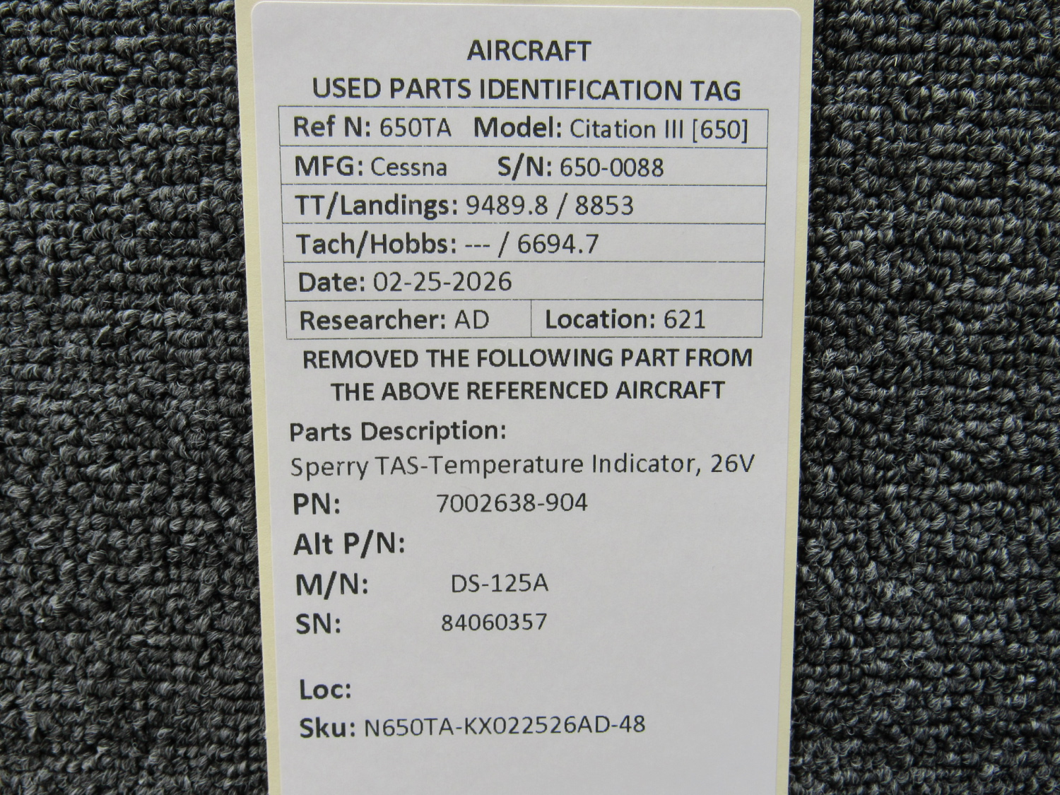 Unless specifically noted, most of our used airplane parts are sold in the condition they were removed, which means you should expect the usual signs of wear and tear.