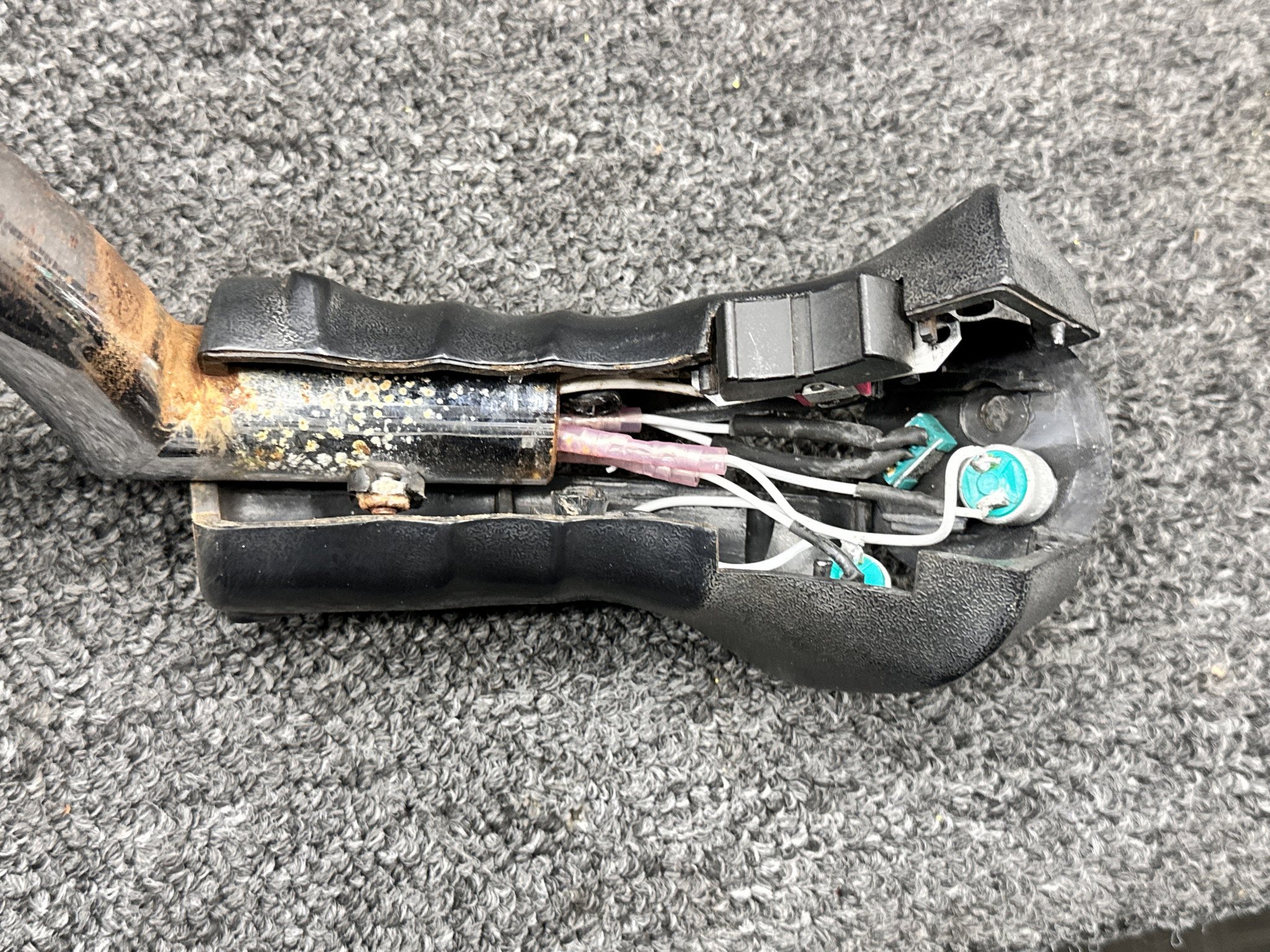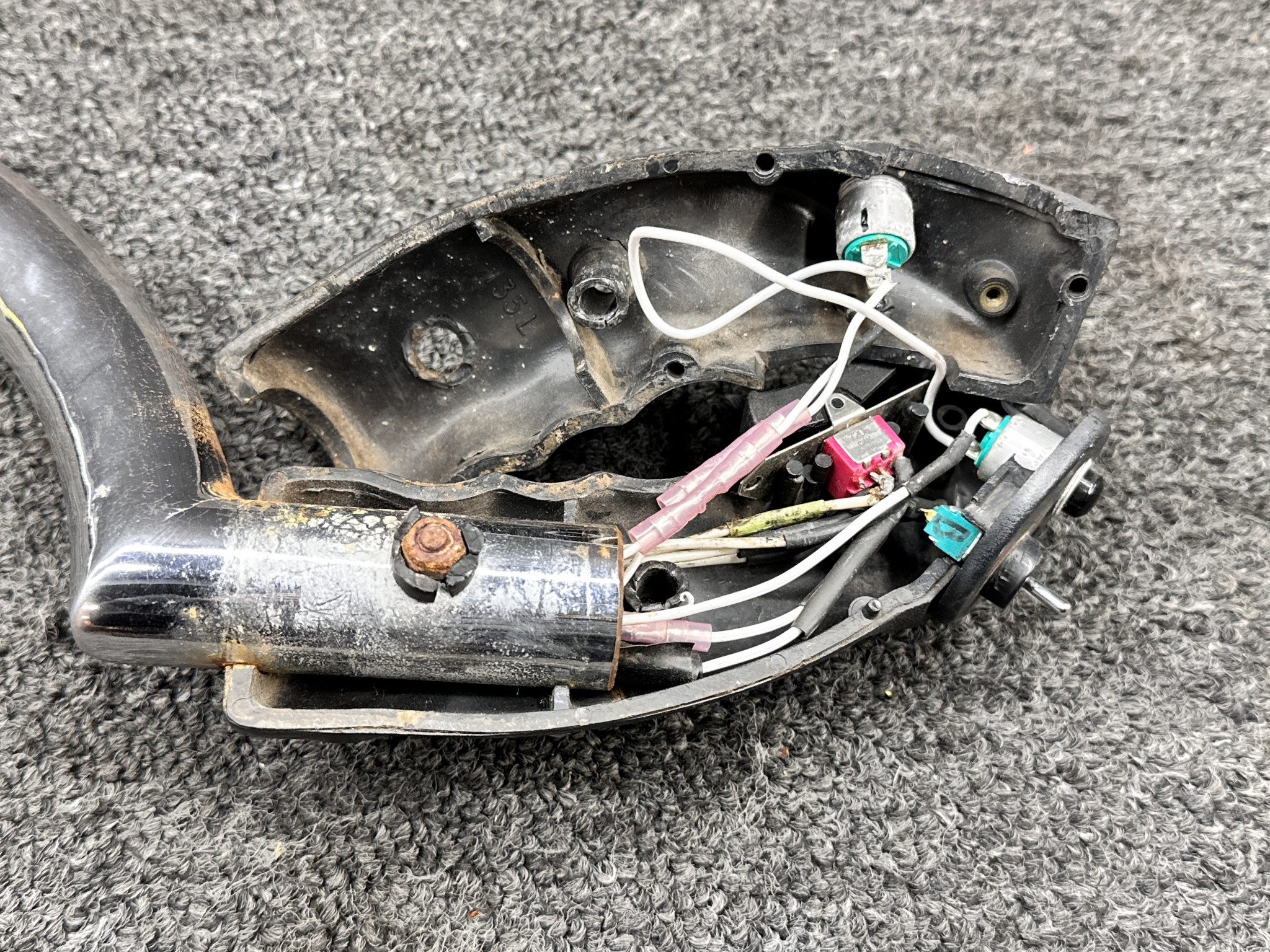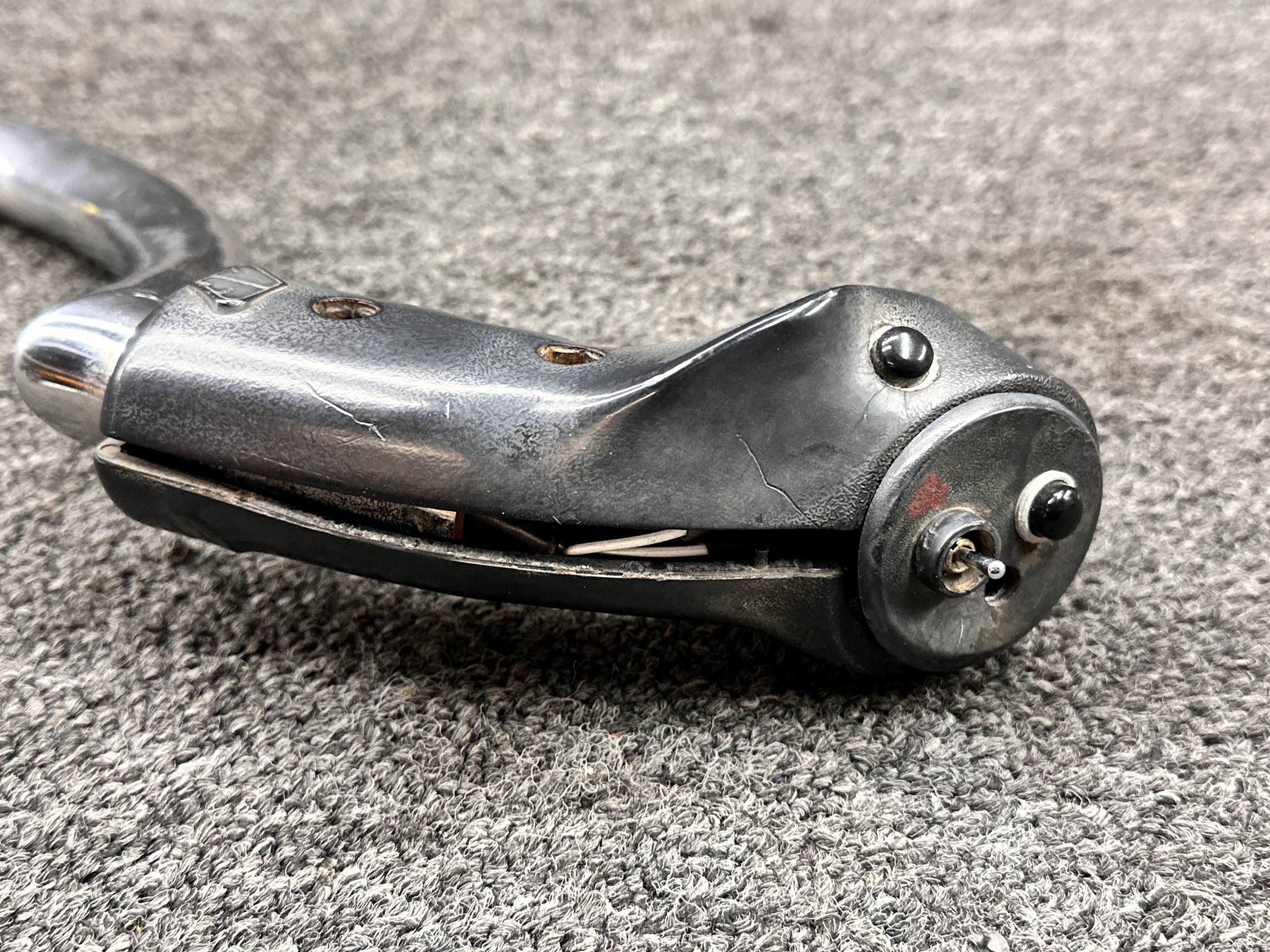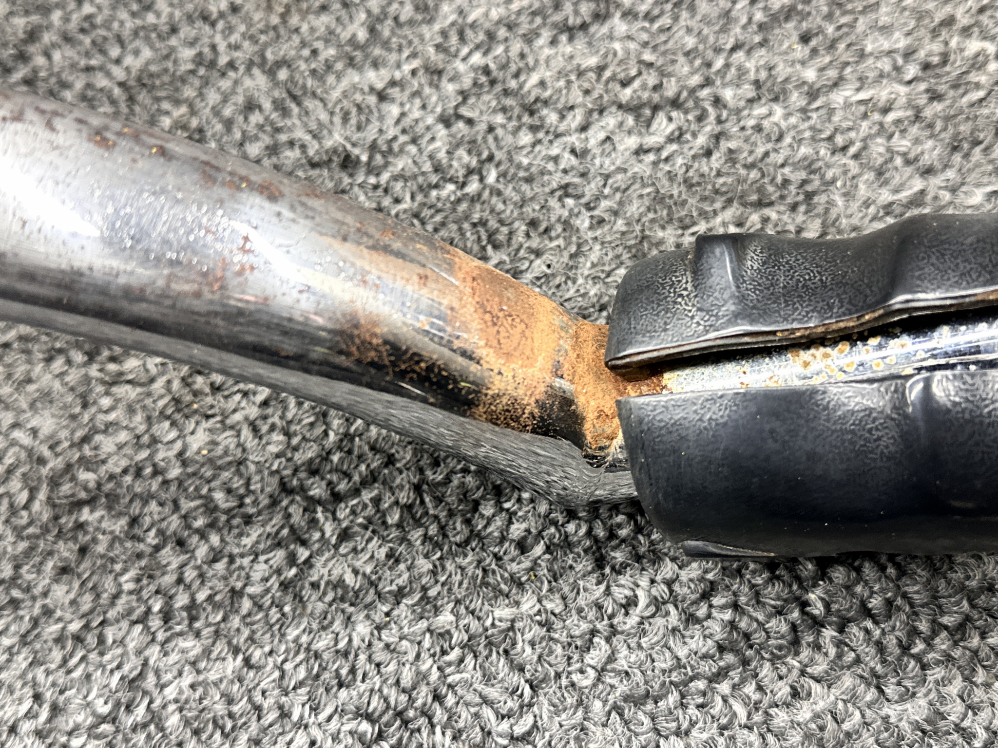 - Chrome has corrosion and handle is cracked and missing screw to hold it together