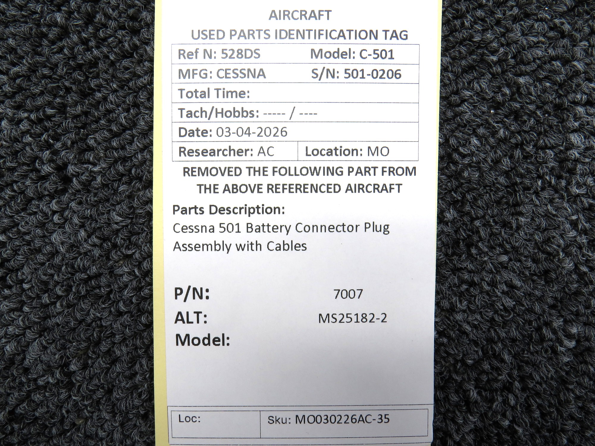 Every part is carefully inspected throughout our process and several times before it goes online. Most items are sold as-removed, just as they came off the aircraft. These parts are not functionally tested. What we do provide is clear photos, full traceability when available, pricing that reflects the as-removed condition, and a no-nonsense 90-day return window.