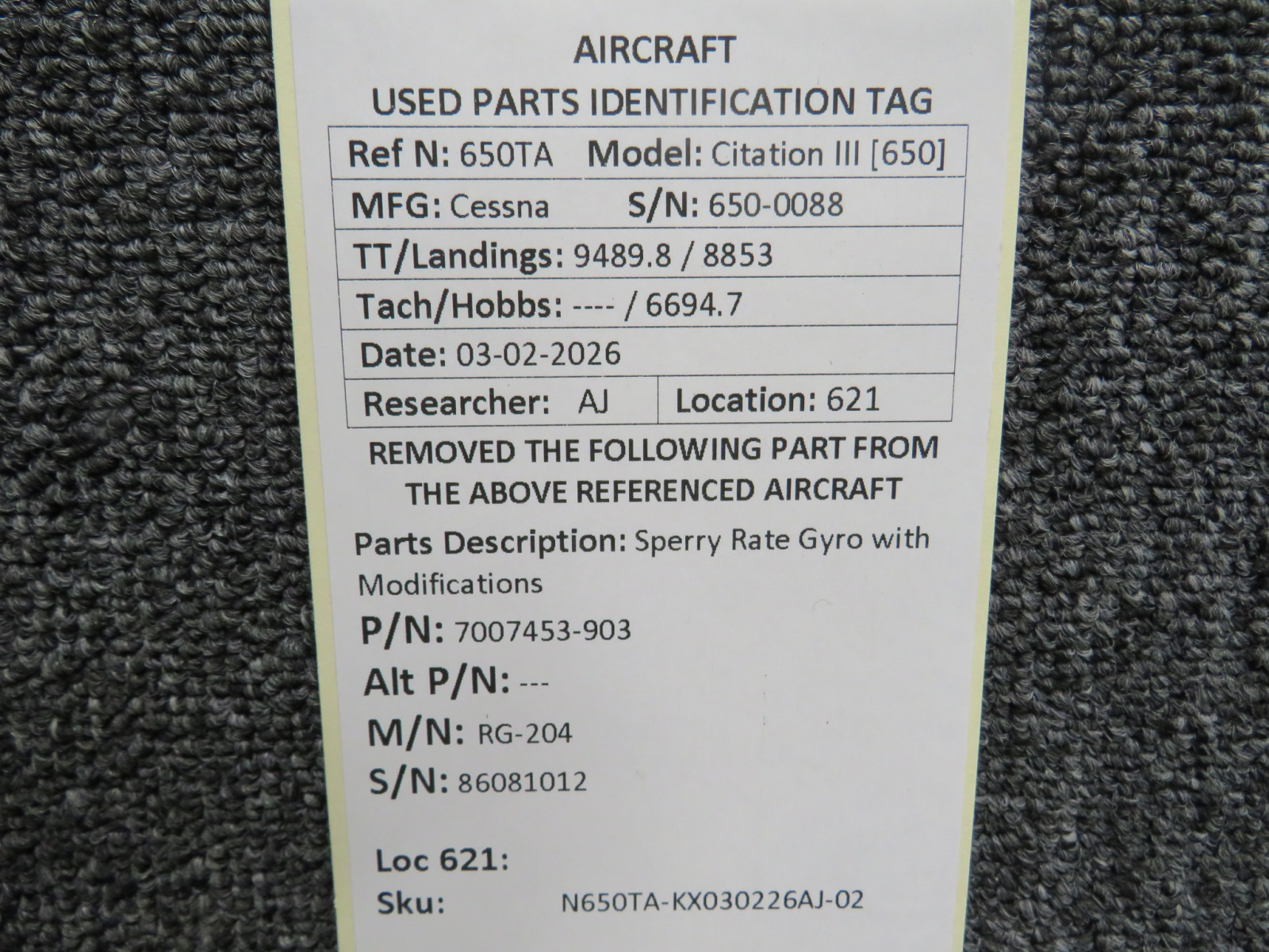 Every part is carefully inspected throughout our process and several times before it goes online. Most items are sold as-removed, just as they came off the aircraft. These parts are not functionally tested. What we do provide is clear photos, full traceability when available, pricing that reflects the as-removed condition, and a no-nonsense 90-day return window.