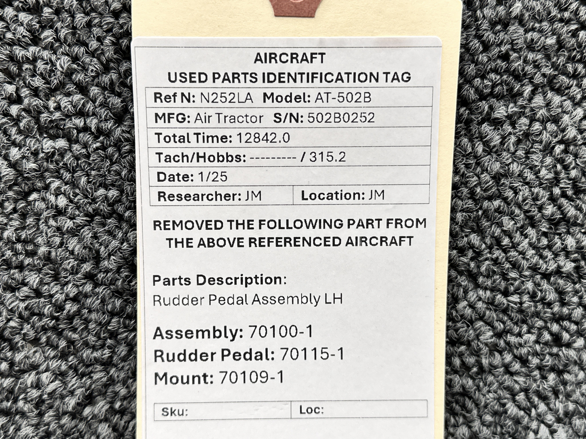 - Rudder Pedal Part Number: 70115-1