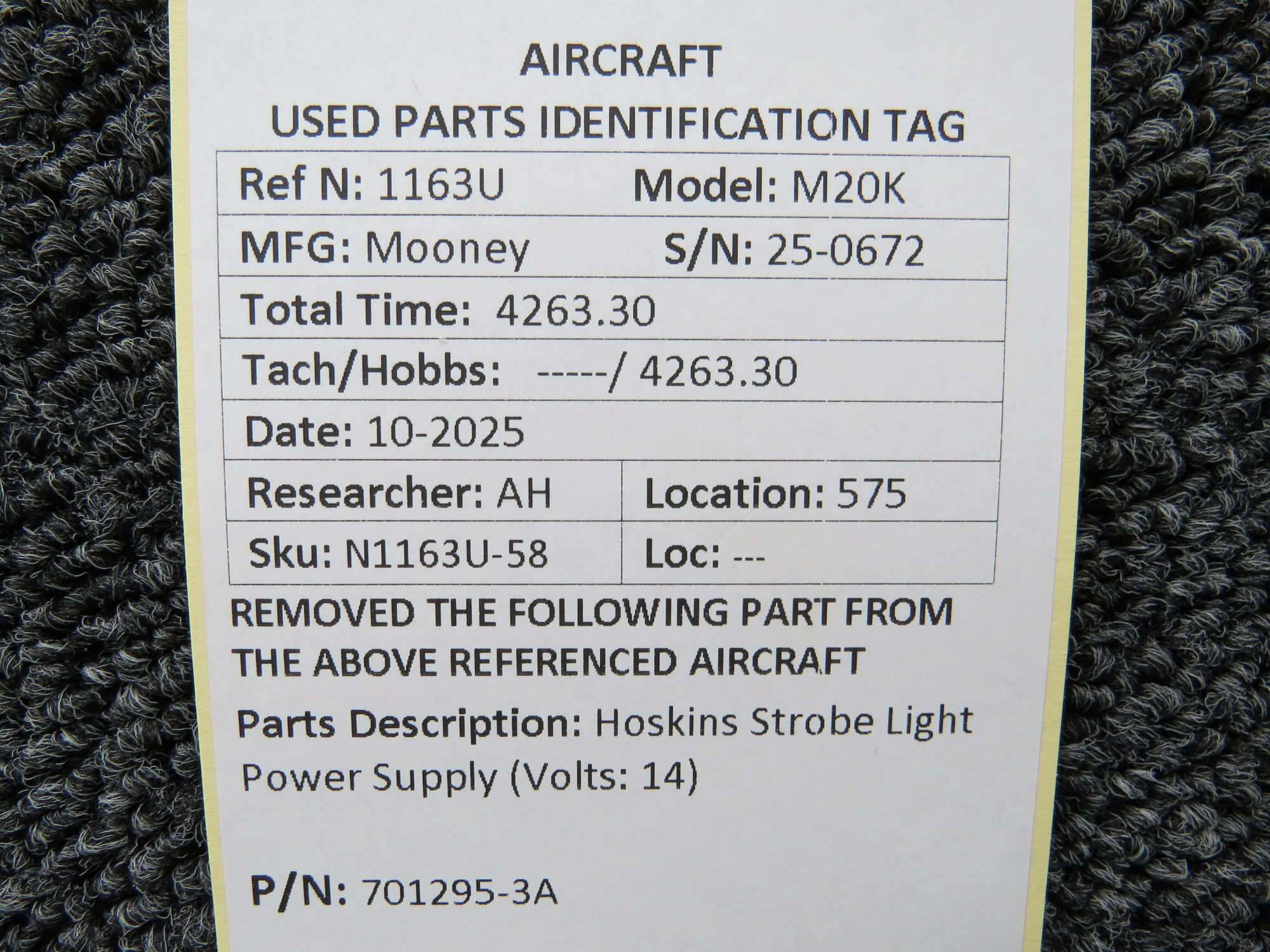 Unless specifically noted, most of our used airplane parts are sold in the condition they were removed, which means you should expect the usual signs of wear and tear.