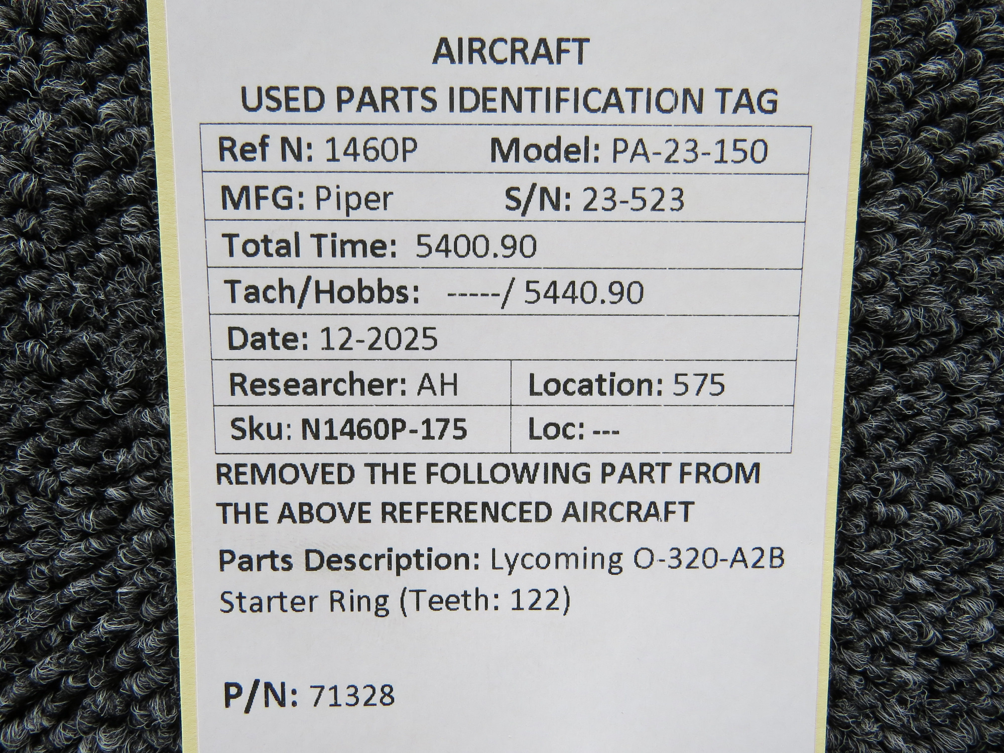 - Removed From: Lycoming O-320-A2B