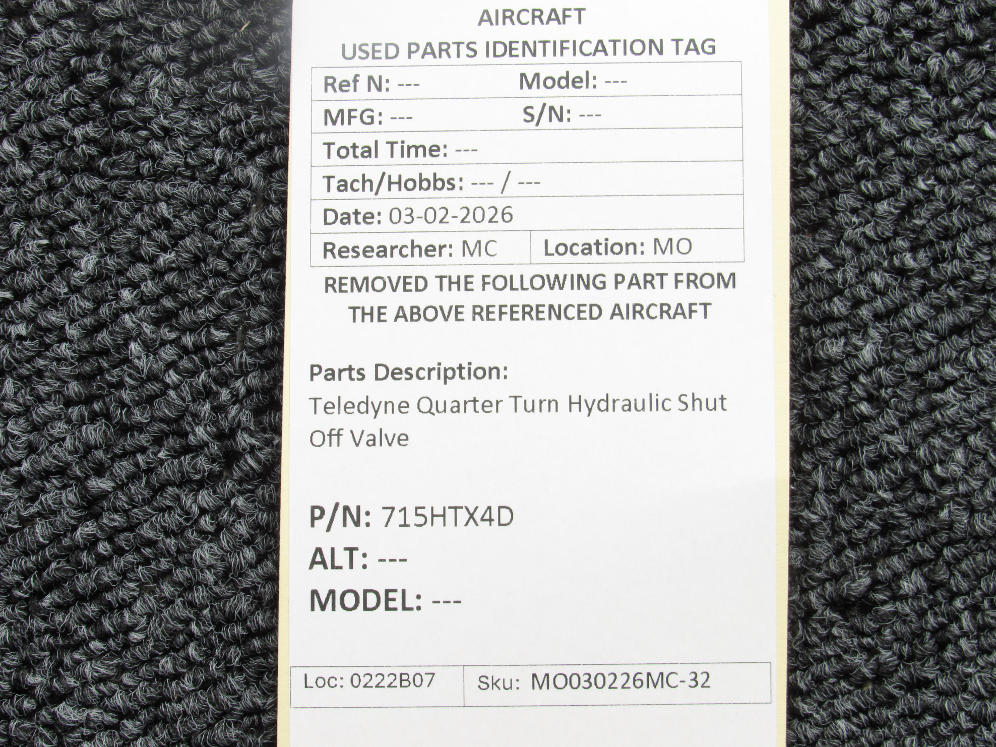 Every part is carefully inspected throughout our process and several times before it goes online. Most items are sold as-removed, just as they came off the aircraft. These parts are not functionally tested. What we do provide is clear photos, full traceability when available, pricing that reflects the as-removed condition, and a no-nonsense 90-day return window.