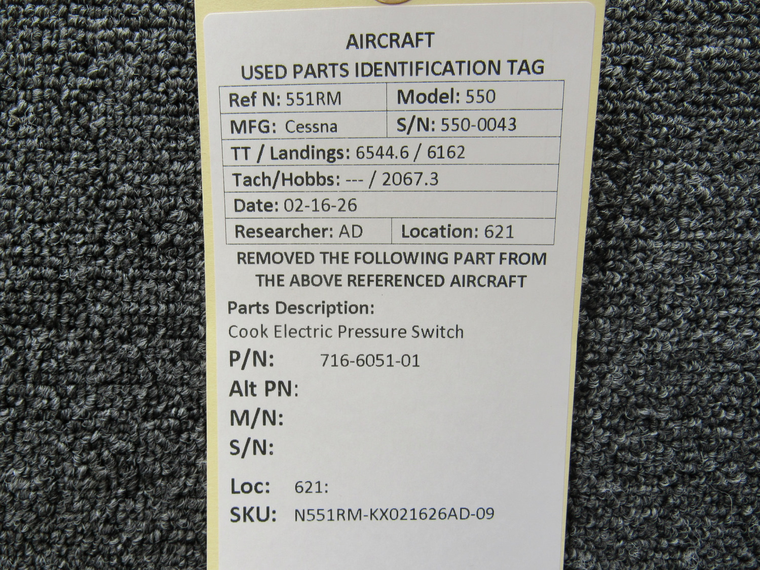 Unless specifically noted, most of our used airplane parts are sold in the condition they were removed, which means you should expect the usual signs of wear and tear.