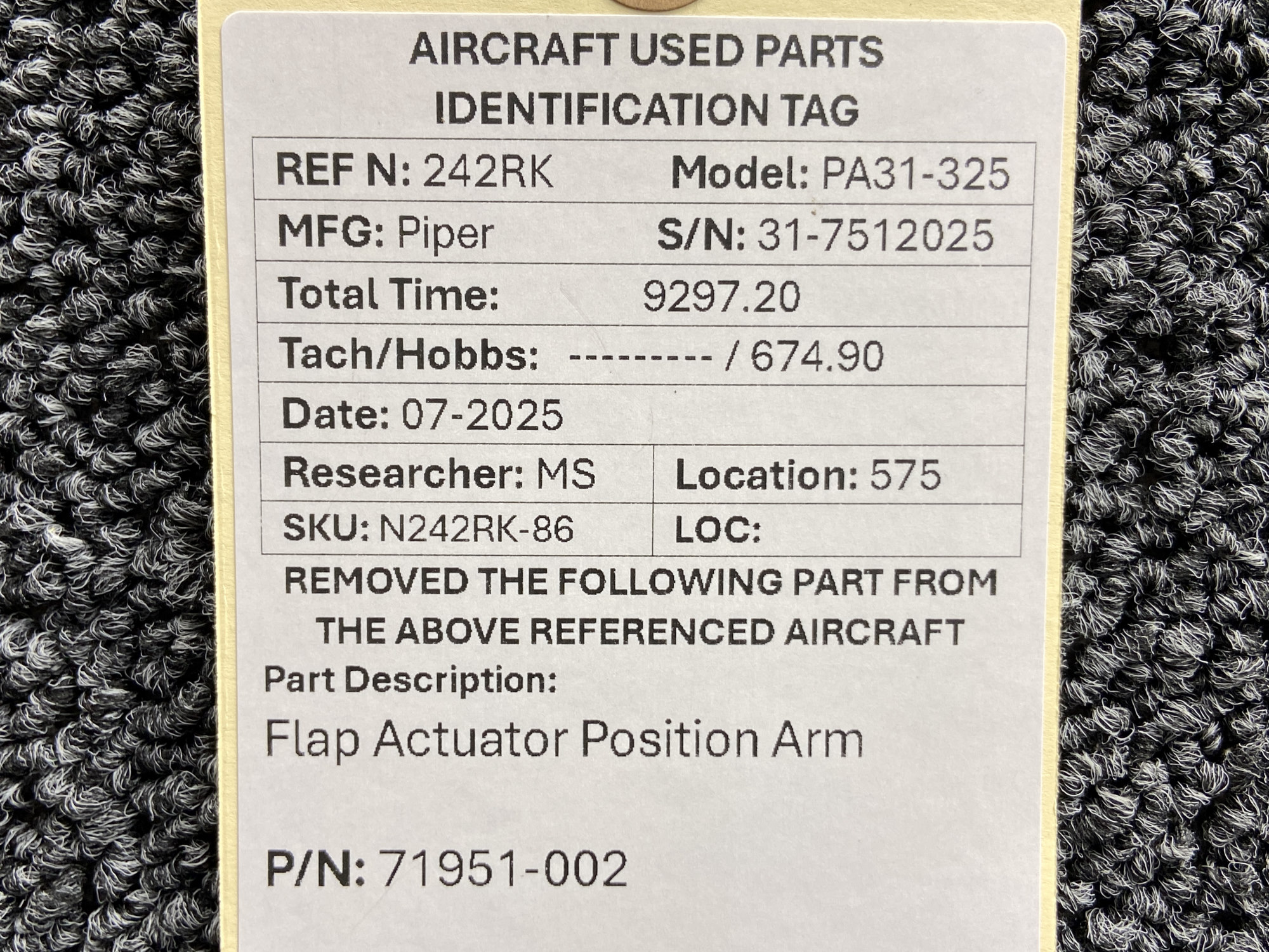 Unless specifically noted, most of our used airplane parts are sold in the condition they were removed, which means you should expect the usual signs of wear and tear.