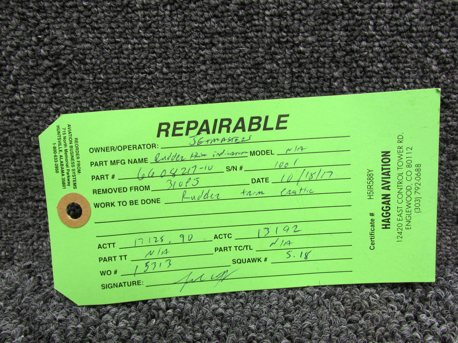 - Has green repairable tag