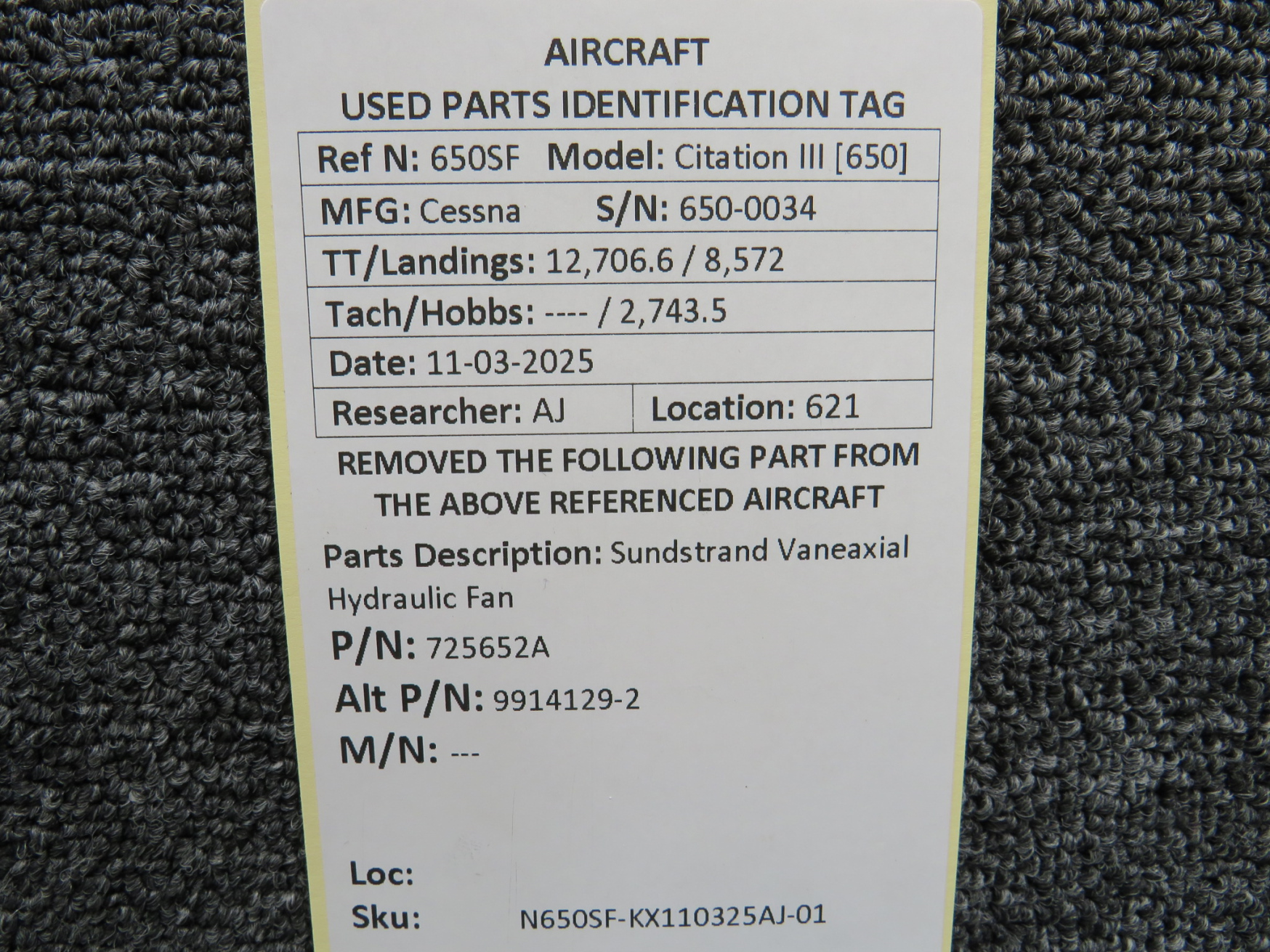 Unless specifically noted, most of our used airplane parts are sold in the condition they were removed, which means you should expect the usual signs of wear and tear.