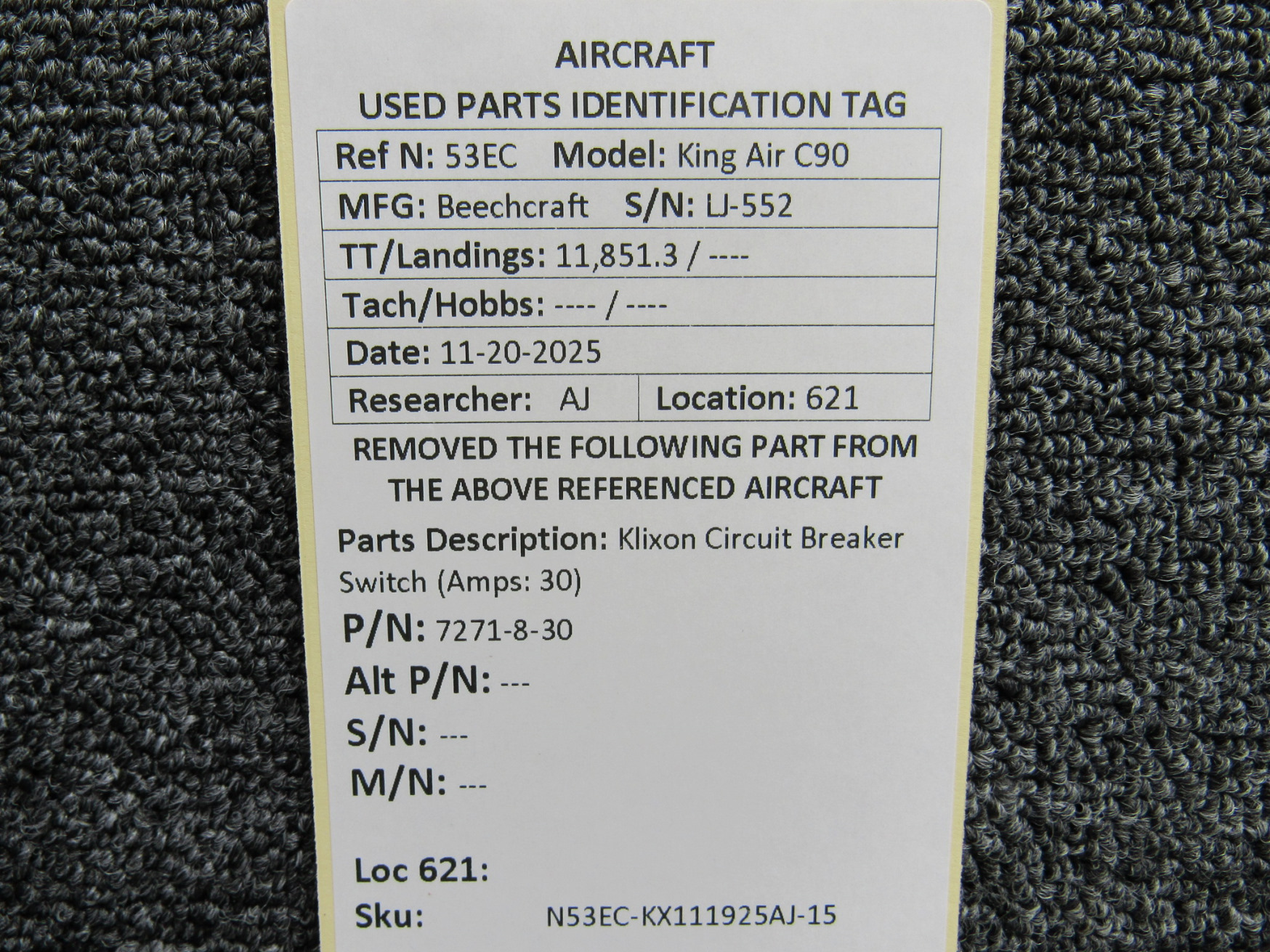 Unless specifically noted, most of our used airplane parts are sold in the condition they were removed, which means you should expect the usual signs of wear and tear.