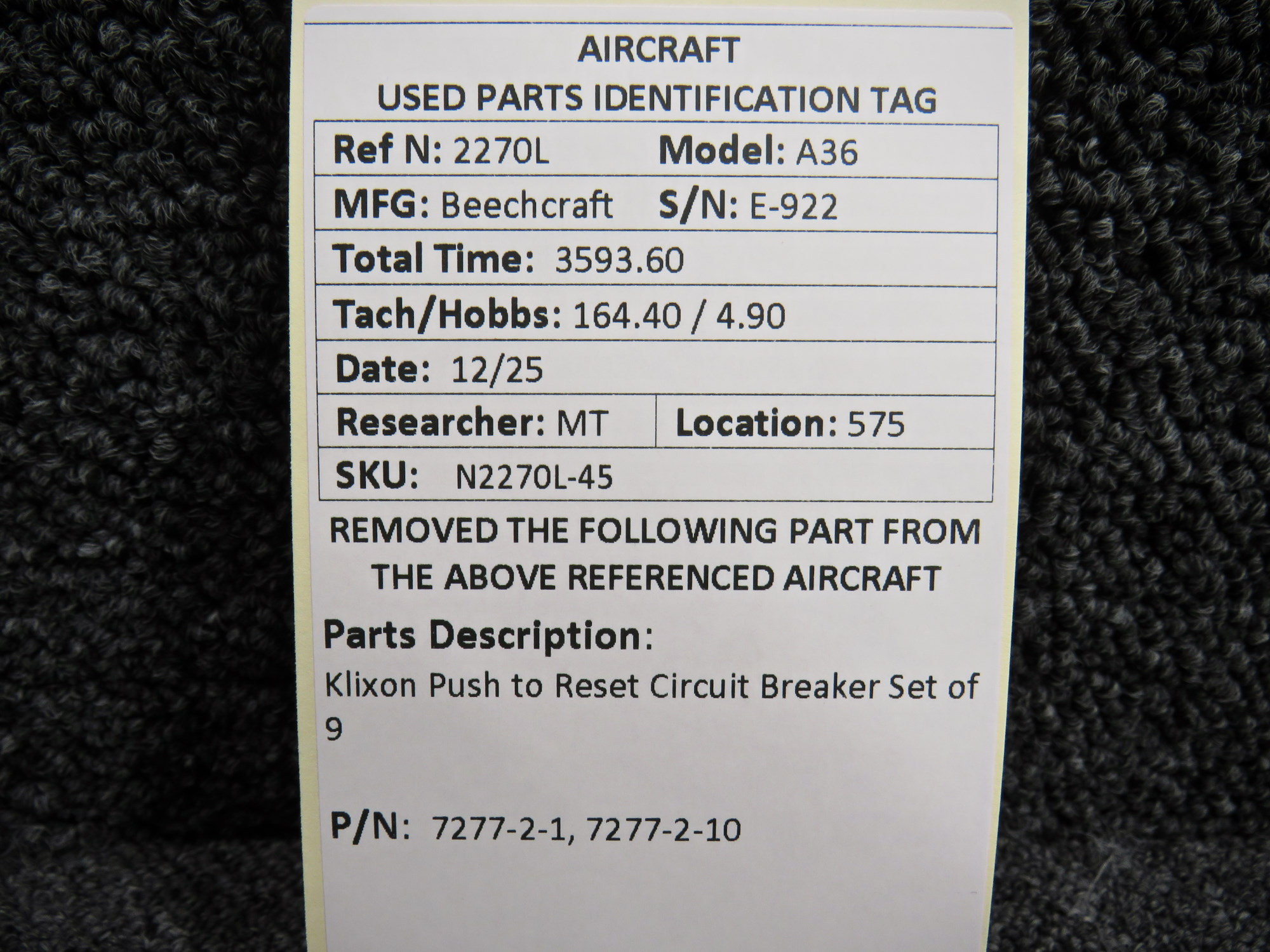 Every part is carefully inspected throughout our process and several times before it goes online. Most items are sold as-removed, just as they came off the aircraft. These parts are not functionally tested. What we do provide is clear photos, full traceability when available, pricing that reflects the as-removed condition, and a no-nonsense 90-day return window.