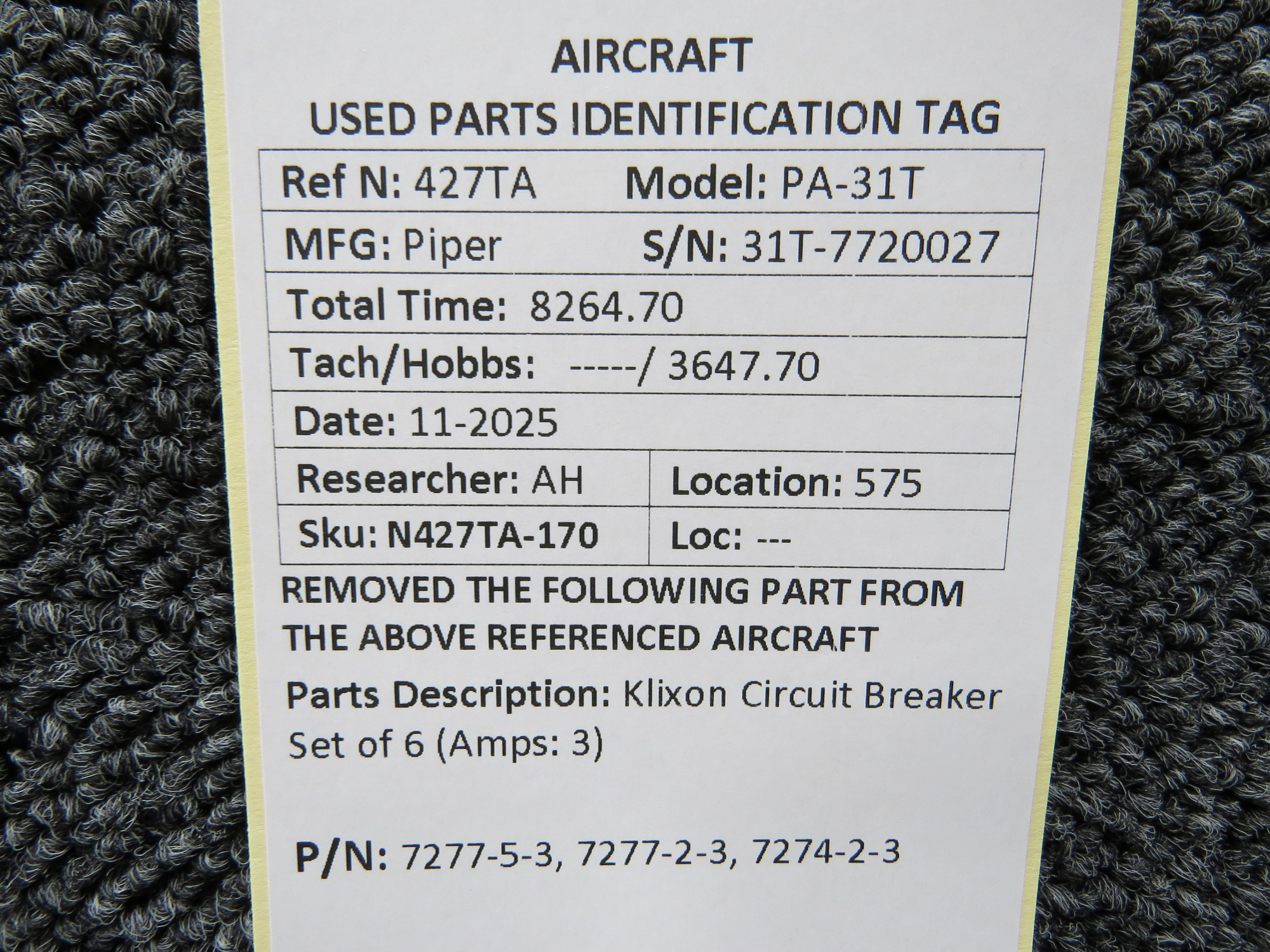 Unless specifically noted, most of our used airplane parts are sold in the condition they were removed, which means you should expect the usual signs of wear and tear.