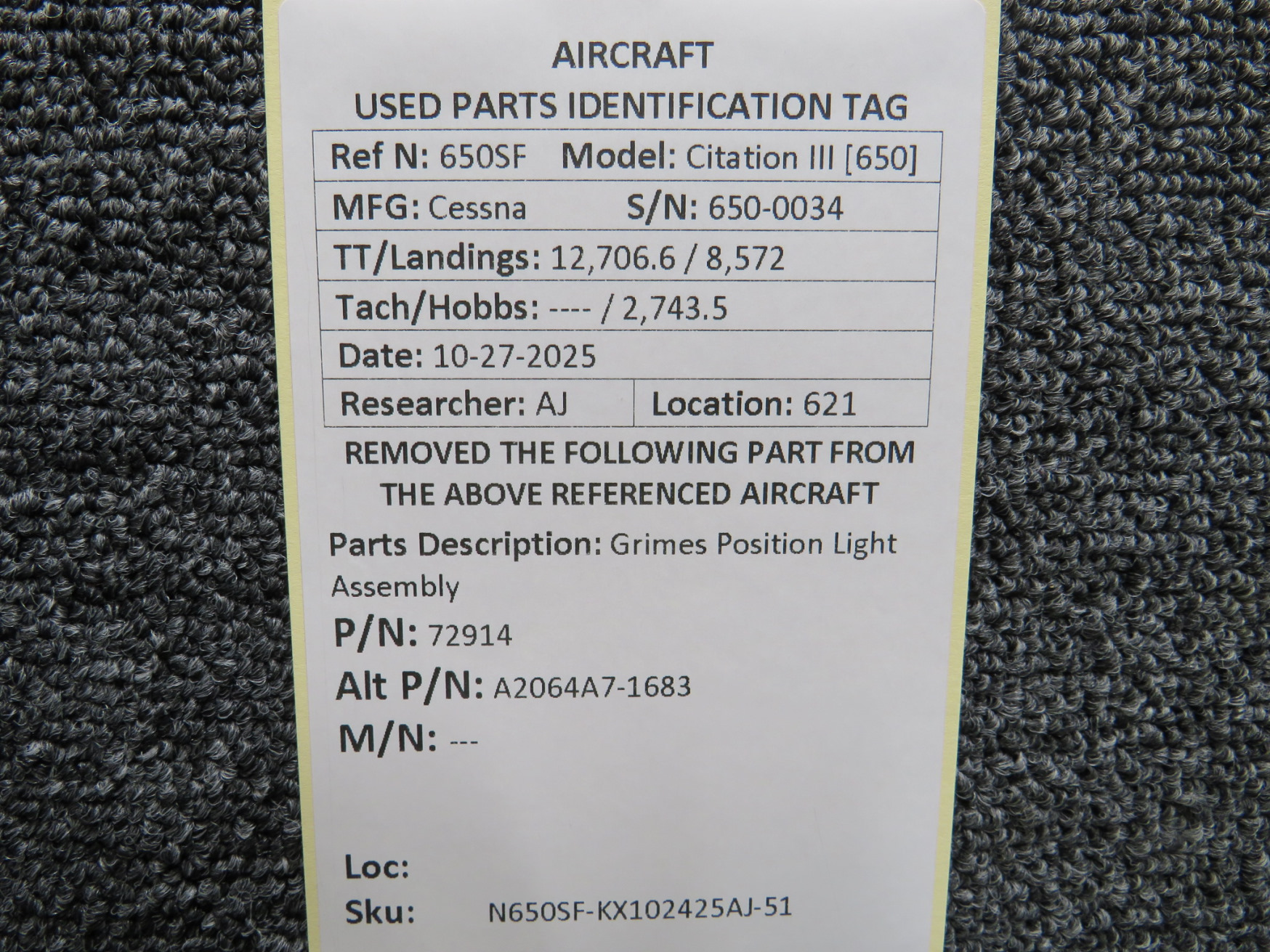 Unless specifically noted, most of our used airplane parts are sold in the condition they were removed, which means you should expect the usual signs of wear and tear.