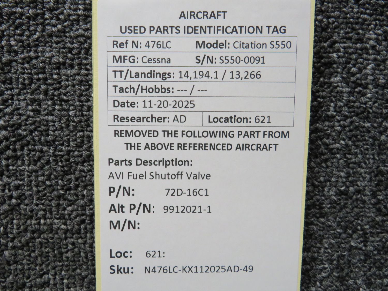 Unless specifically noted, most of our used airplane parts are sold in the condition they were removed, which means you should expect the usual signs of wear and tear.