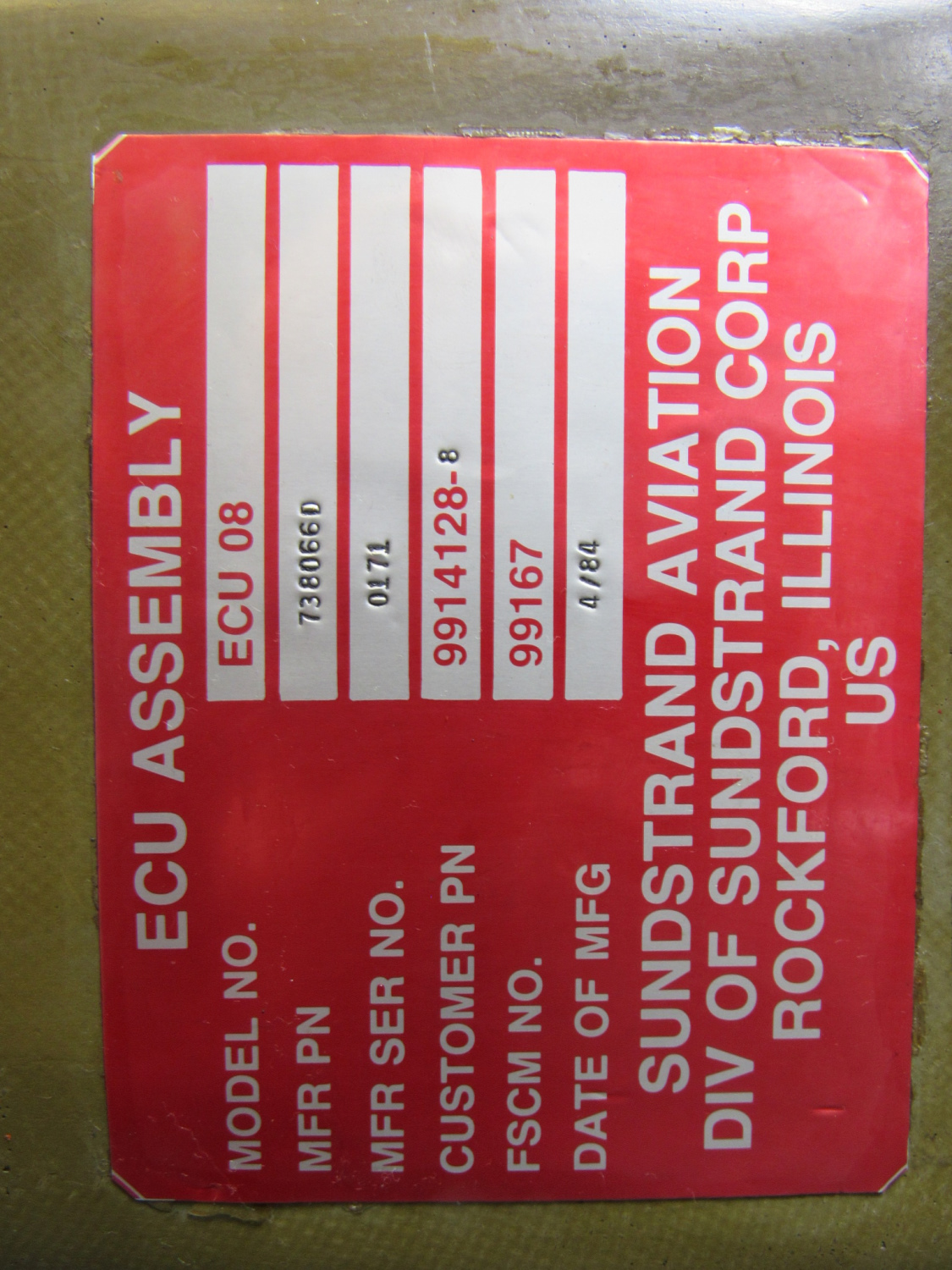 - Second Sundstrand ECU Part Number: 7387783B