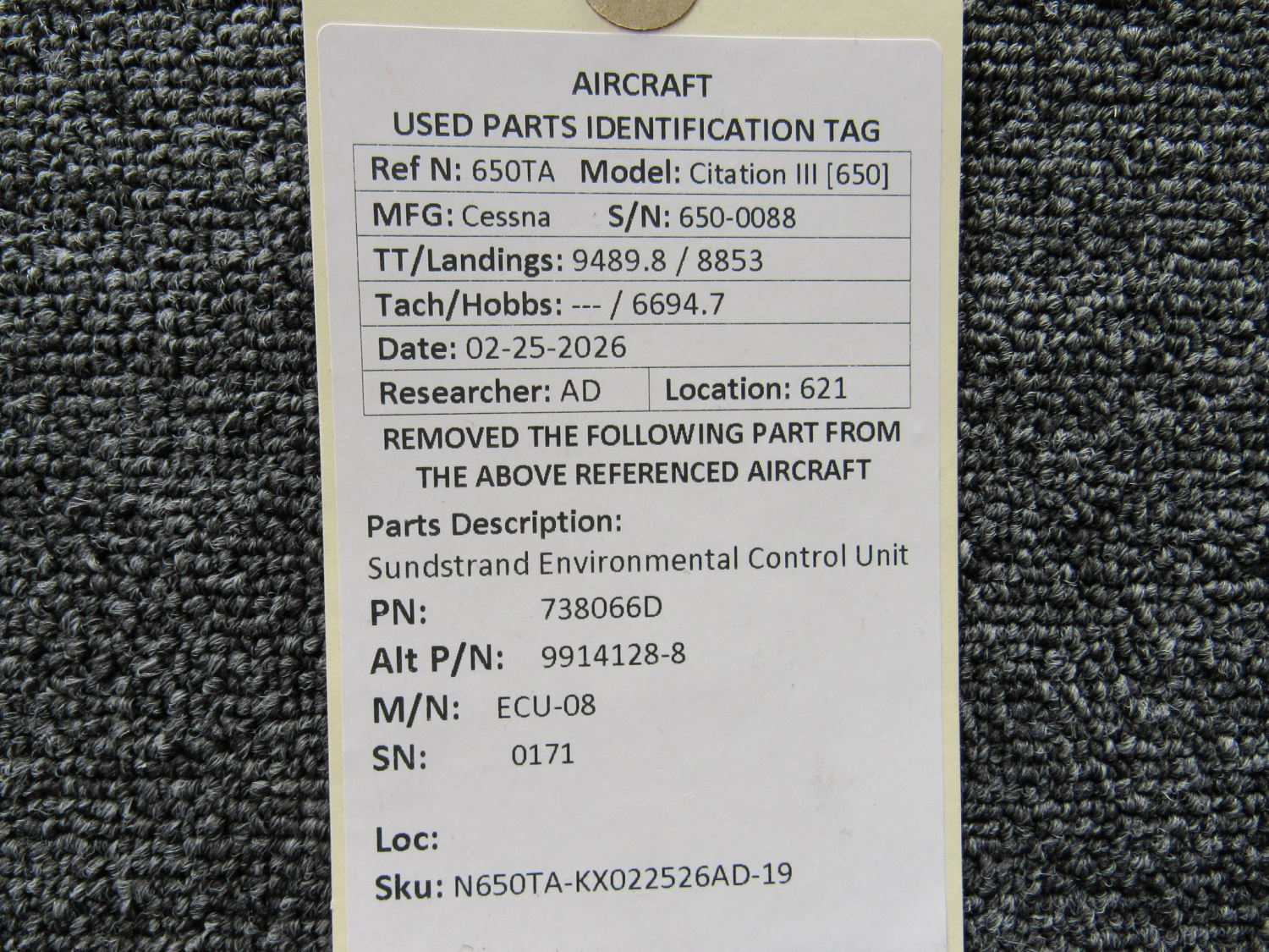 Unless specifically noted, most of our used airplane parts are sold in the condition they were removed, which means you should expect the usual signs of wear and tear.