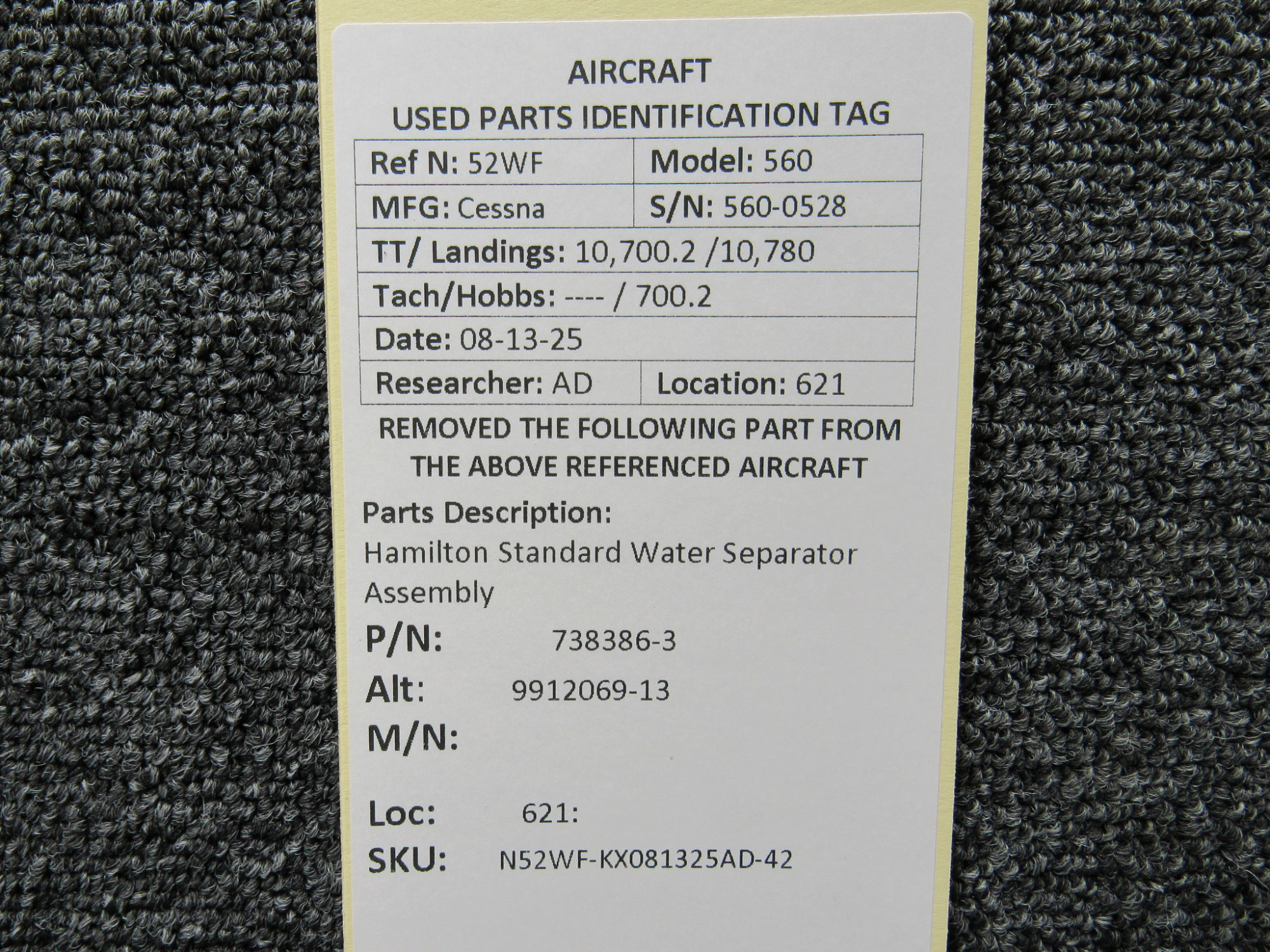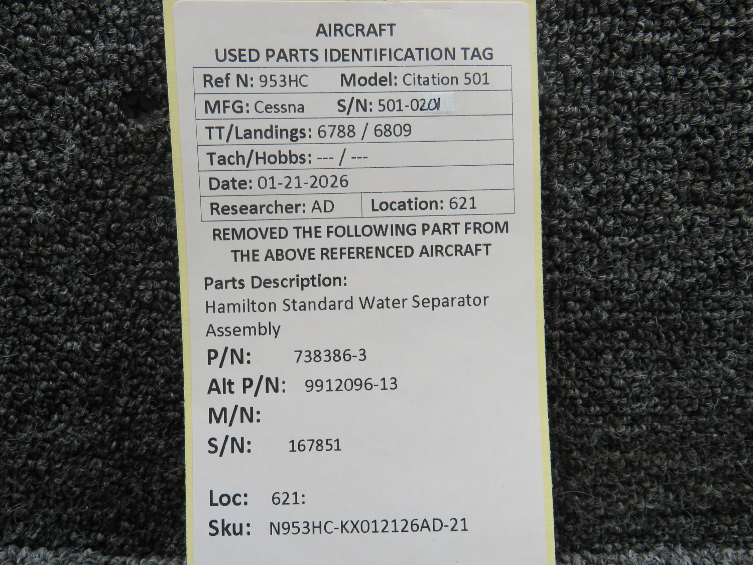 Unless specifically noted, most of our used airplane parts are sold in the condition they were removed, which means you should expect the usual signs of wear and tear.