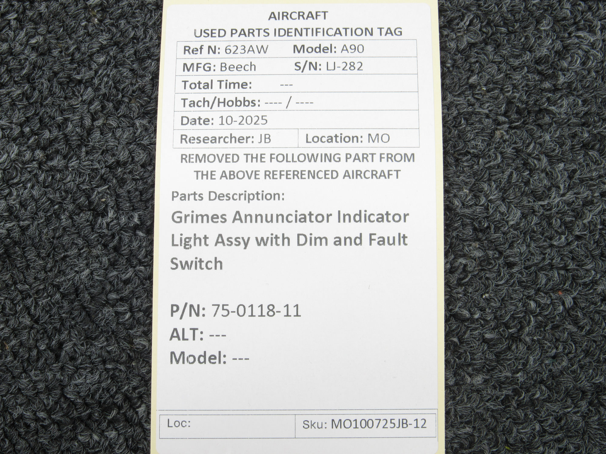 Unless specifically noted, most of our used airplane parts are sold in the condition they were removed, which means you should expect the usual signs of wear and tear.