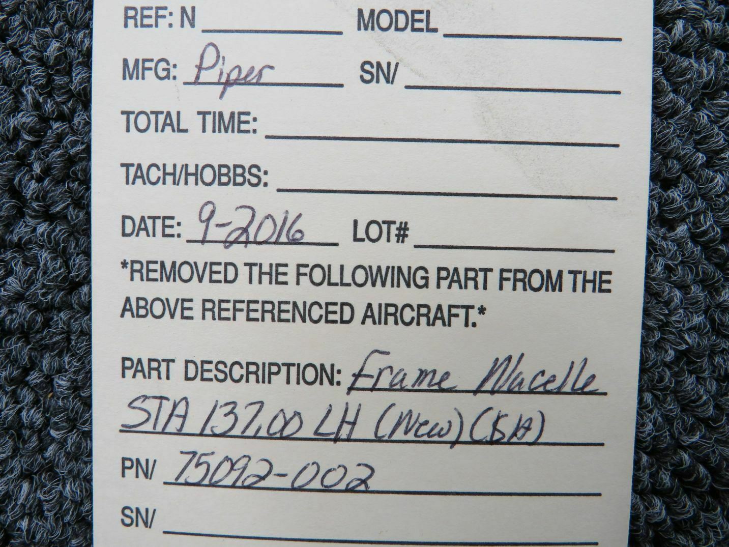 75092-002 Piper Frame Nacelle STA 137.00 LH (NEW) (SA)