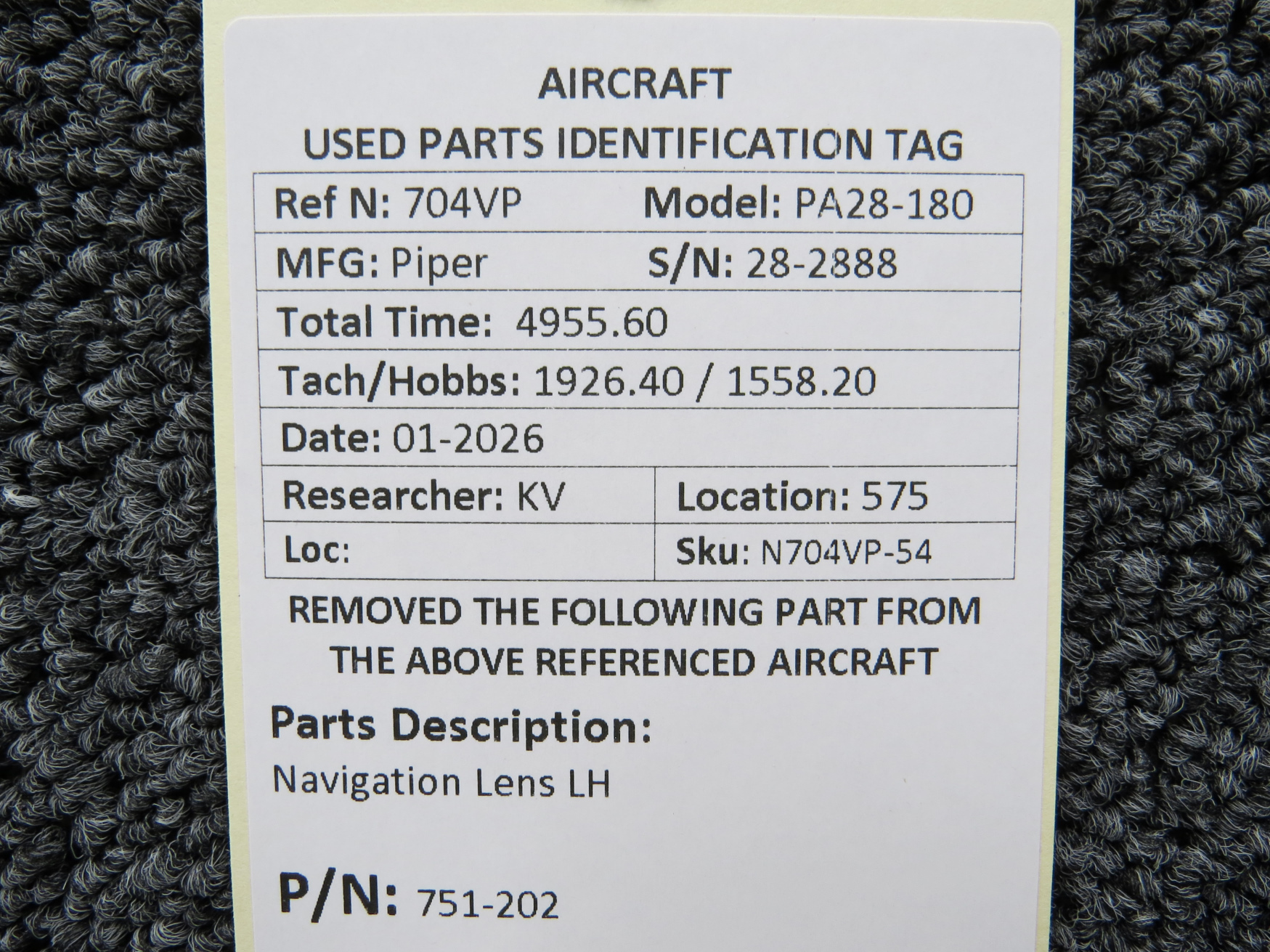 Every part is carefully inspected throughout our process and several times before it goes online. Most items are sold as-removed, just as they came off the aircraft. These parts are not functionally tested. What we do provide is clear photos, full traceability when available, pricing that reflects the as-removed condition, and a no-nonsense 90-day return window.