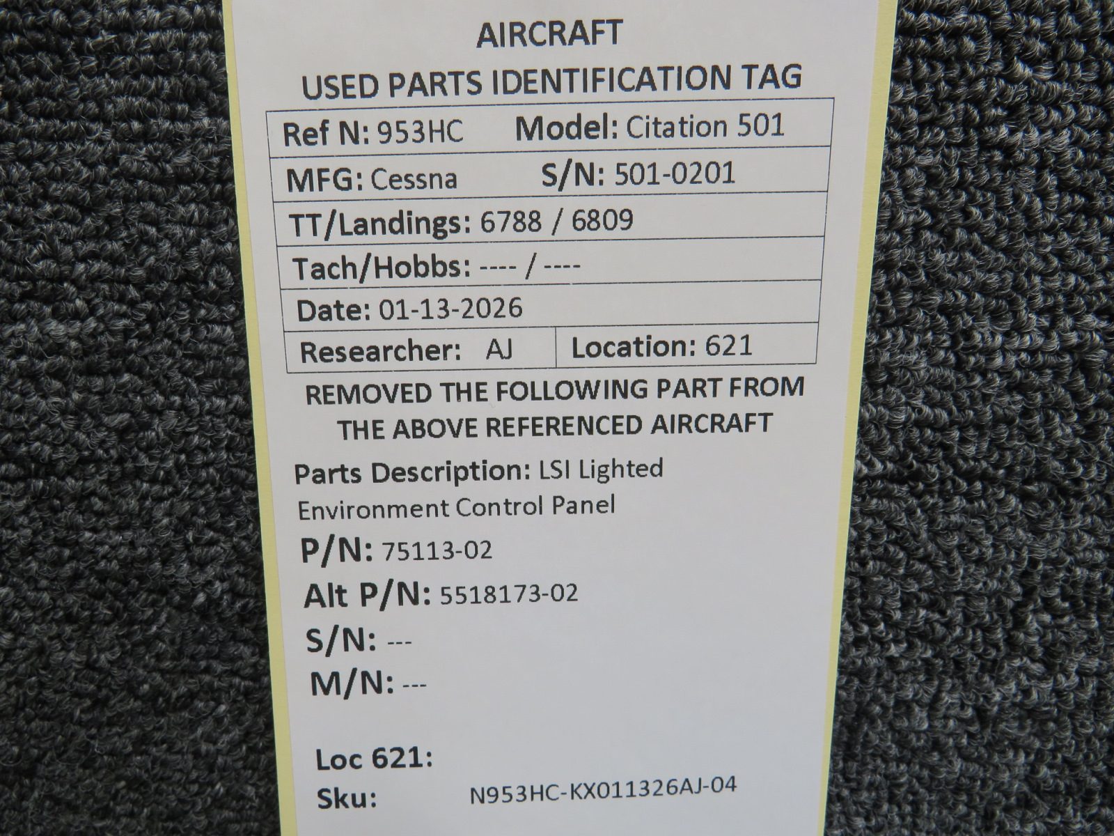 Unless specifically noted, most of our used airplane parts are sold in the condition they were removed, which means you should expect the usual signs of wear and tear.