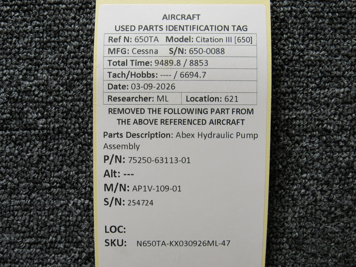 Every part is carefully inspected throughout our process and several times before it goes online. Most items are sold as-removed, just as they came off the aircraft. These parts are not functionally tested. What we do provide is clear photos, full traceability when available, pricing that reflects the as-removed condition, and a no-nonsense 90-day return window.