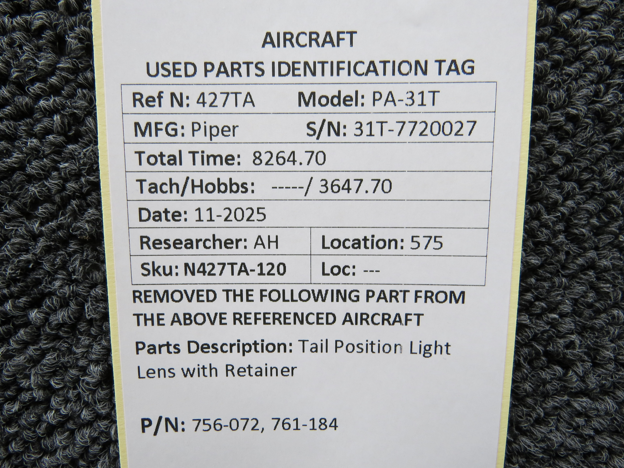 Unless specifically noted, most of our used airplane parts are sold in the condition they were removed, which means you should expect the usual signs of wear and tear.
