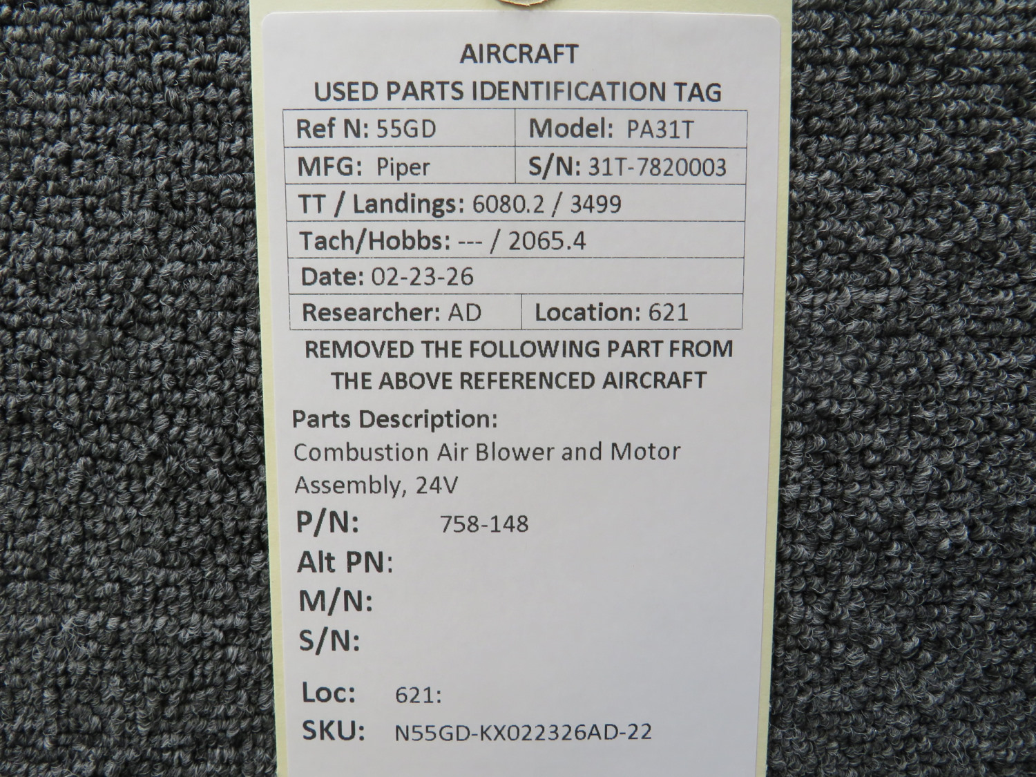Unless specifically noted, most of our used airplane parts are sold in the condition they were removed, which means you should expect the usual signs of wear and tear.