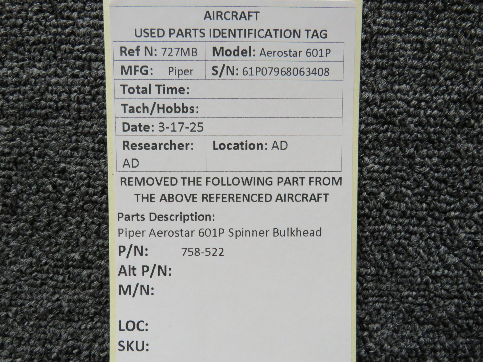 Unless specifically noted, most of our used airplane parts are sold in the condition they were removed, which means you should expect the usual signs of wear and tear.