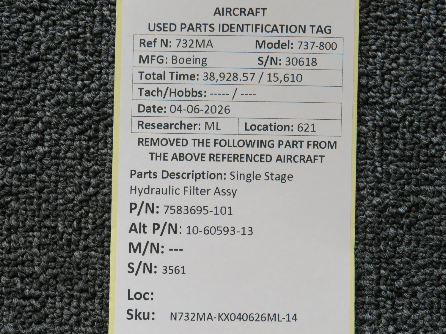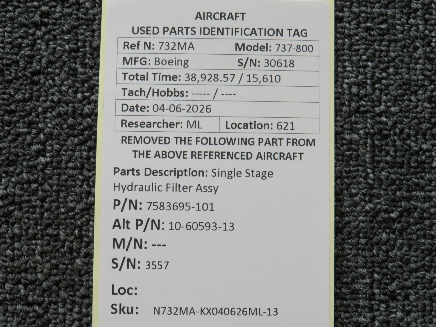 Every part is carefully inspected throughout our process and several times before it goes online. Most items are sold as-removed, just as they came off the aircraft. These parts are not functionally tested. What we do provide is clear photos, full traceability when available, pricing that reflects the as-removed condition, and a no-nonsense 90-day return window.